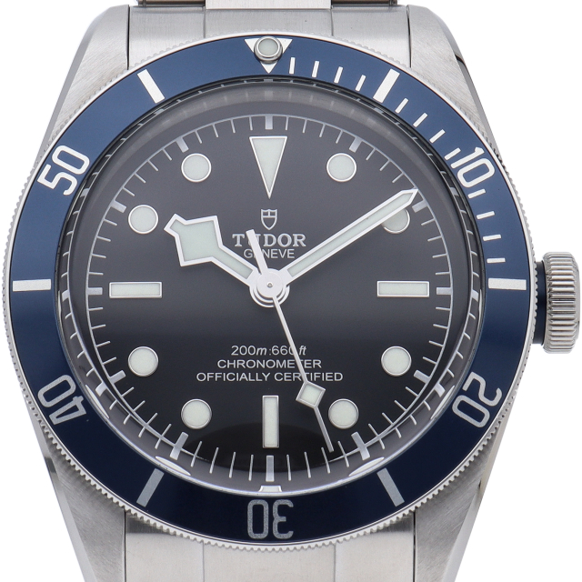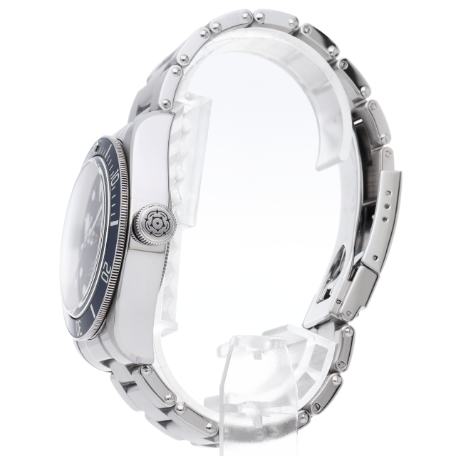 チューダーの初期のサブマリーナに使用されていた通称“イカ針”を採用した「ブラックベイ」2016年発表のニューモデルです。ダイヤルには現行タイプの「盾」マークがプリントされていますが、リューズトップにはヴィンテージ感の漂う「バラ」マークを刻印。ムーブメントにはCOSC公認のクロノメーターを取得した70時間パワーリザーブの自社製キャリバー「MT5602」を搭載。