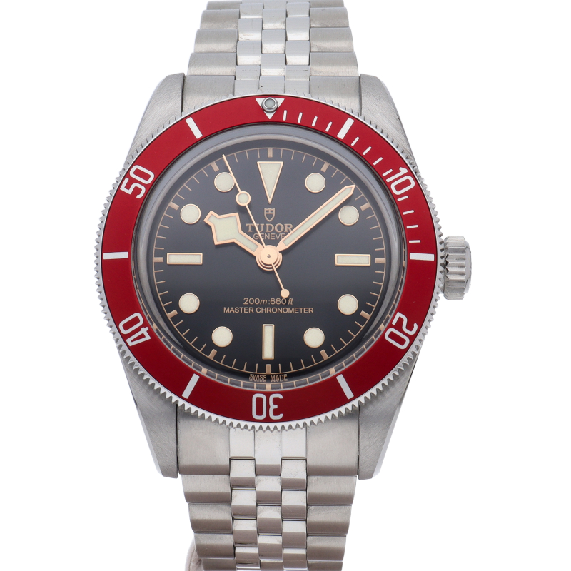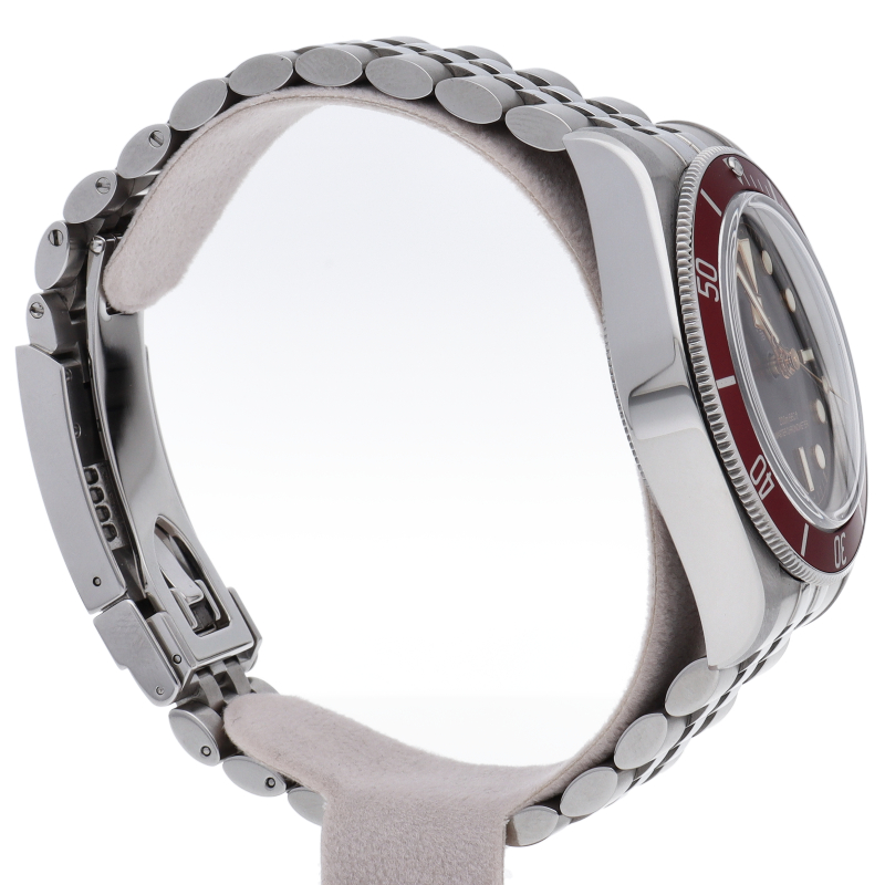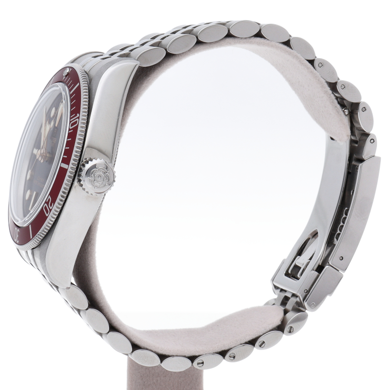 チューダーの初期のサブマリーナに使用されていた通称“イカ針”を採用した「ブラックベイ」の2023年に発表されたモデル。バーガンディ色のベゼルが追加され、防水性、パワーリザーブ、耐磁性、精度のテストを経て、METASマスタークロノメーター認定を受けています。