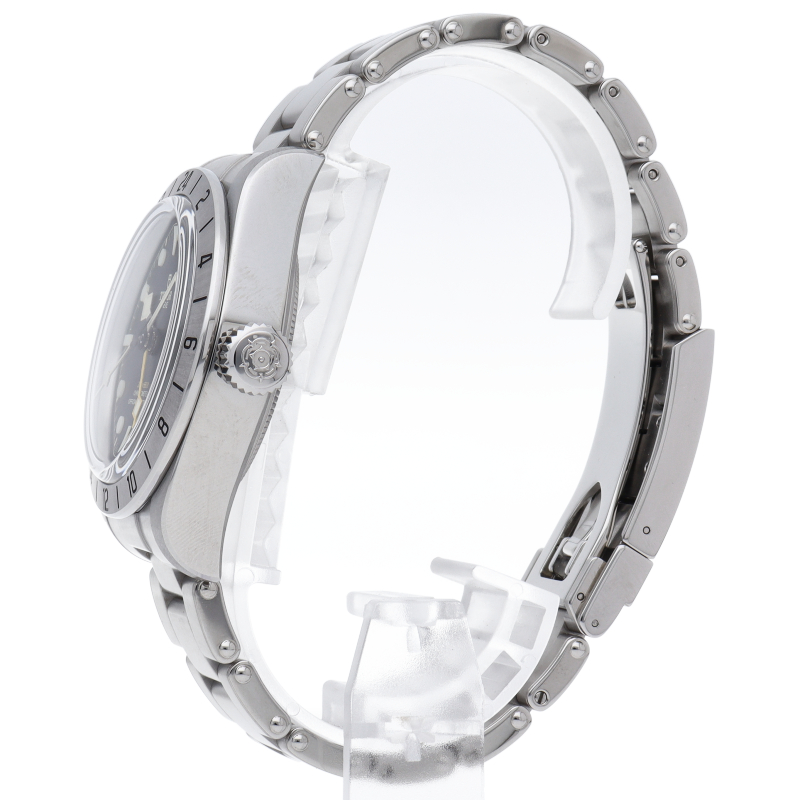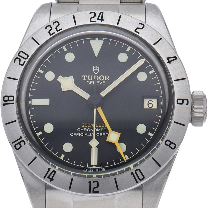 固定式のベゼルに刻印された24時間表示、大きめのイエローの24時間針等、ロレックスの初代エクスプローラー2を彷彿とさせるデザインで話題を呼んだブラックベイプロ。人気機種のフィフティーエイトと同じ39ミリケースを採用しており、日本人の手首周りにも馴染みやすいKサイズ感です。ムーブメントはクロノメーター認定を受け70時間のパワーリザーブを有する、両方向巻上げ式の自社製MT5652を搭載しています。