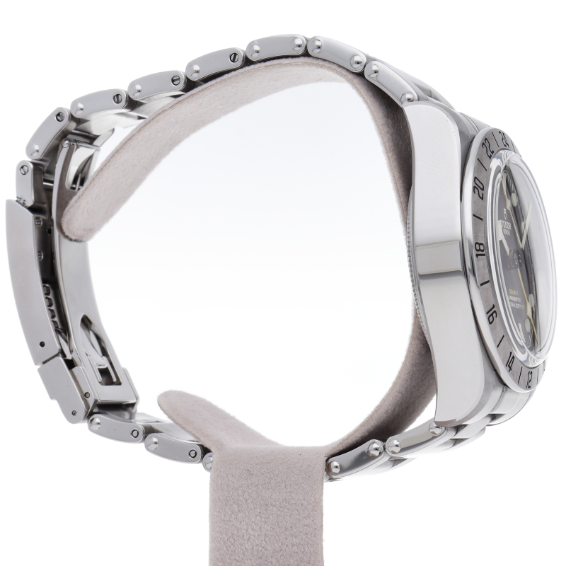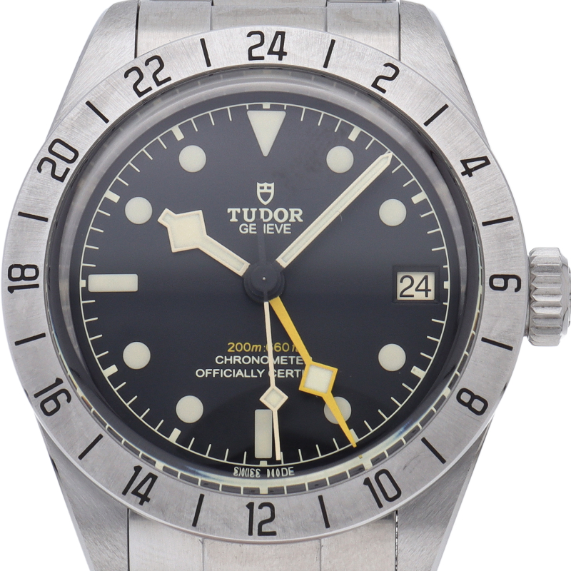 固定式のベゼルに刻印された24時間表示、大きめのイエローの24時間針等、ロレックスの初代エクスプローラー2を彷彿とさせるデザインで話題を呼んだブラックベイプロ。人気機種のフィフティーエイトと同じ39ミリケースを採用しており、日本人の手首周りにも馴染みやすいKサイズ感です。ムーブメントはクロノメーター認定を受け70時間のパワーリザーブを有する、両方向巻上げ式の自社製MT5652を搭載しています。