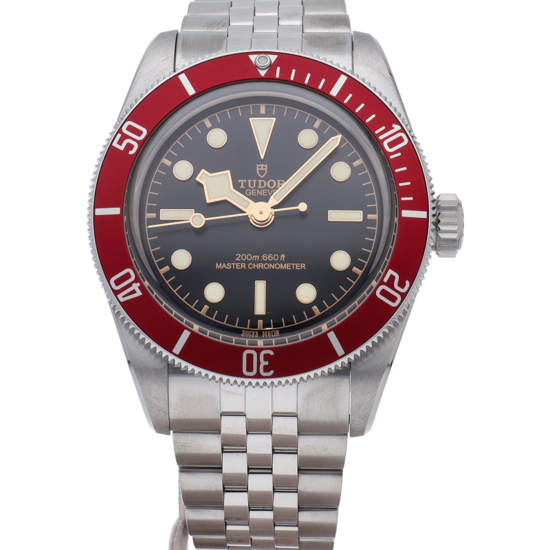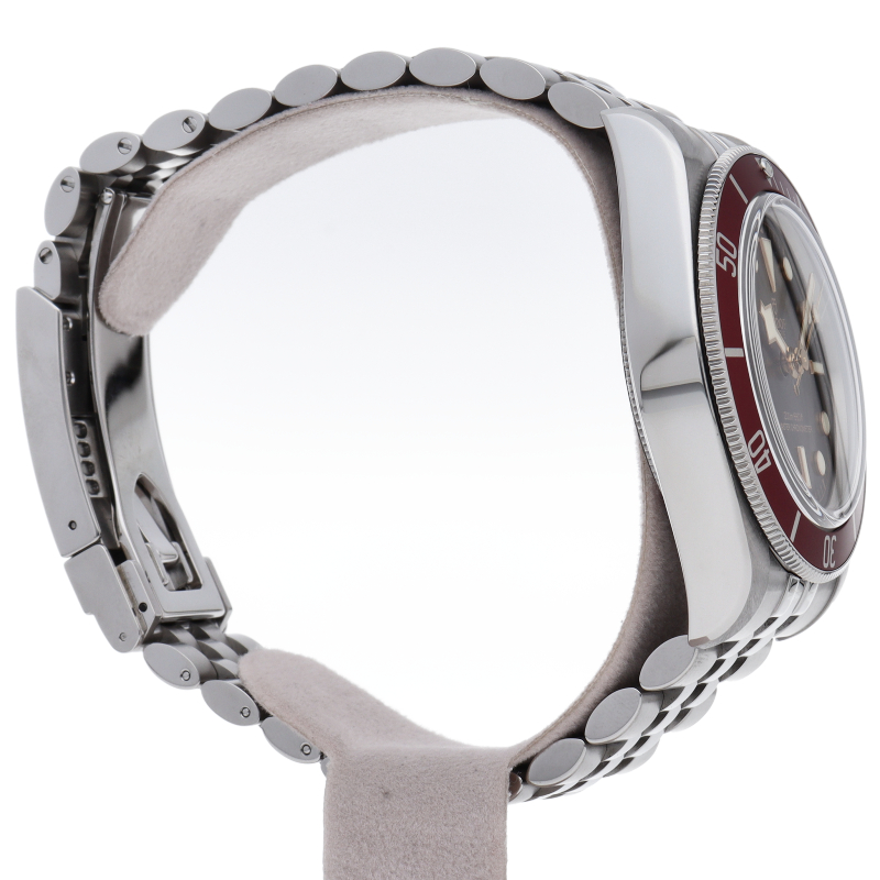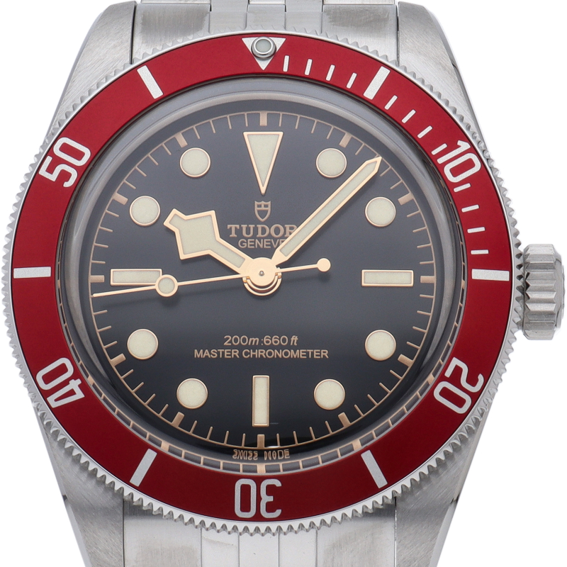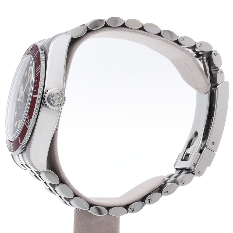 チューダーの初期のサブマリーナに使用されていた通称“イカ針”を採用した「ブラックベイ」の2023年に発表されたモデル。バーガンディ色のベゼルが追加され、防水性、パワーリザーブ、耐磁性、精度のテストを経て、METASマスタークロノメーター認定を受けています。