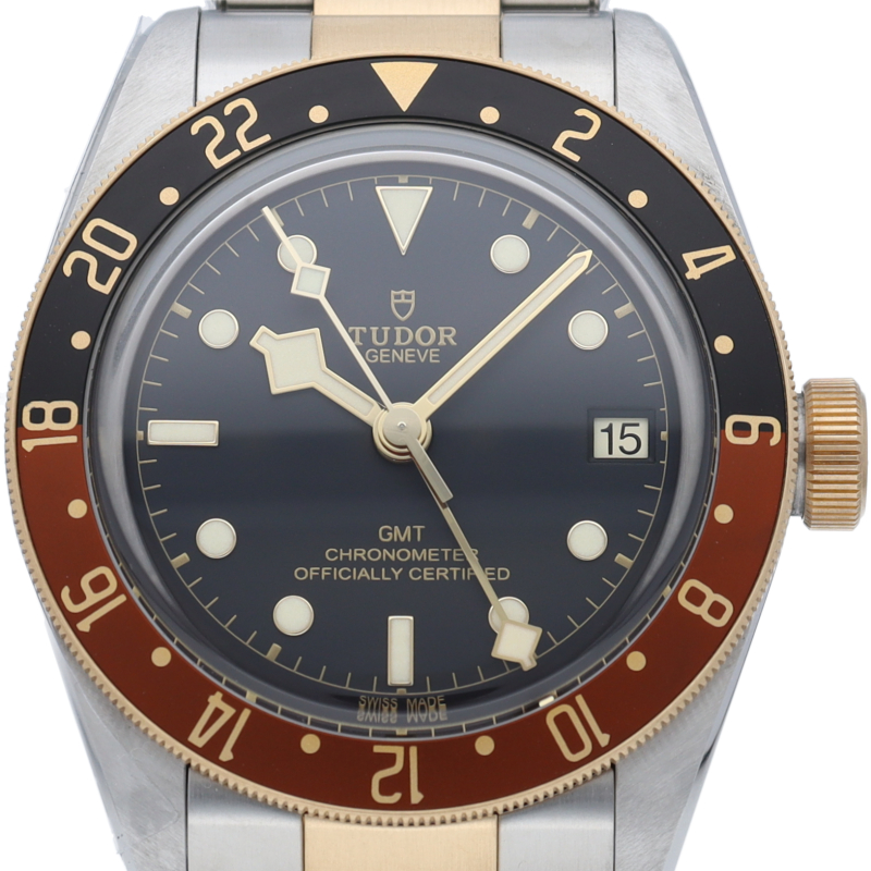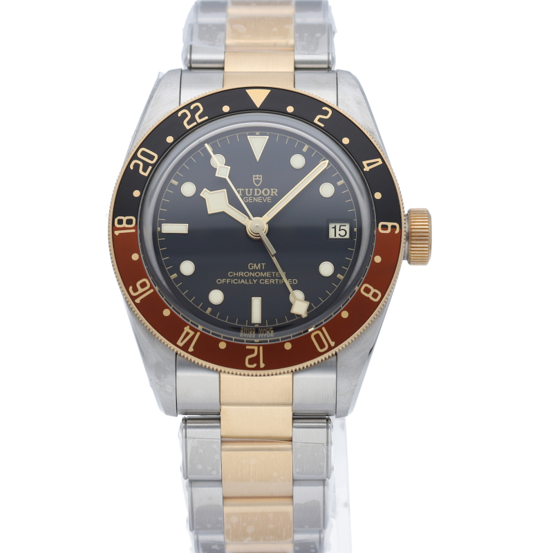 2022年の新作となる「ブラック/ブラウン」ベゼルを装備した「ヘリテージブラックベイ」。チュードルを代表するスポーツモデル「ブラックベイ」のGMT搭載モデル。搭載されている自社製ムーブメント「MT5652」は、70時間のパワーリザーブとクロノメーター認定を受けた高精度を誇り、実用性にも優れた1本となっています。