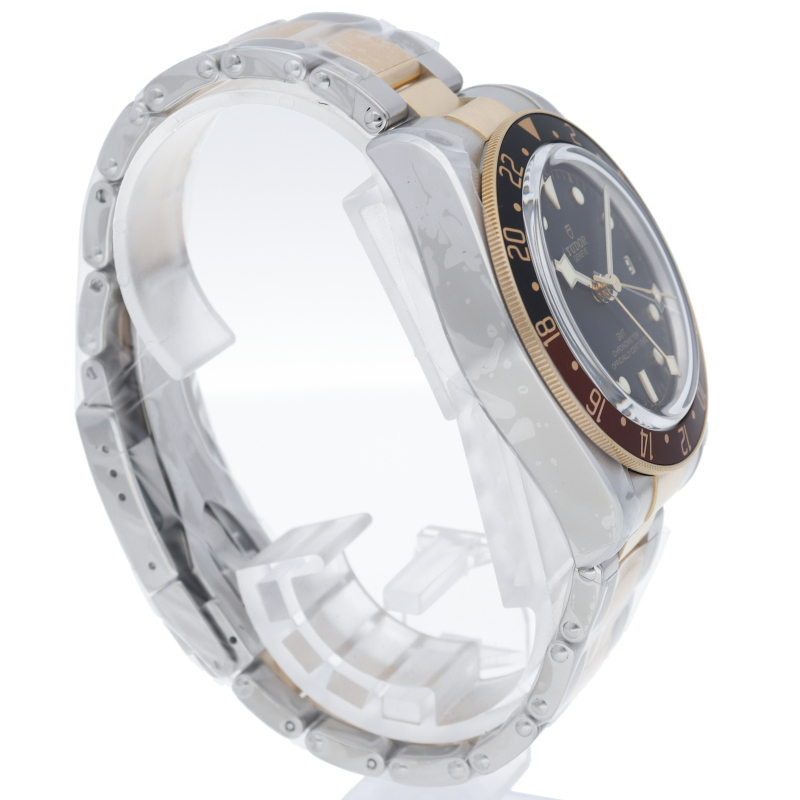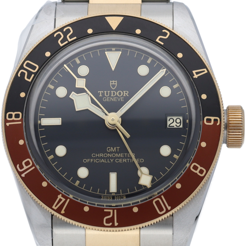 2022年の新作となる「ブラック/ブラウン」ベゼルを装備した「ヘリテージブラックベイ」。チュードルを代表するスポーツモデル「ブラックベイ」のGMT搭載モデル。搭載されている自社製ムーブメント「MT5652」は、70時間のパワーリザーブとクロノメーター認定を受けた高精度を誇り、実用性にも優れた1本となっています。