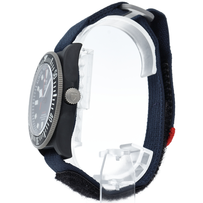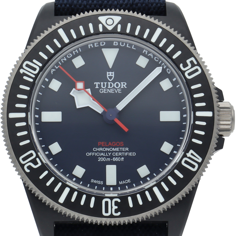 チューダーの人気モデル「ぺラゴス」から、国際ヨットレースに参戦しているチーム「アリンギ・レッドブル・レーシング」とのパートナーシップ記念モデルが登場。ムーブメントは自社製キャリバーMT5602を搭載。70時間のパワーリザーブを誇ります。防水機能は200メートル。素材をカーボンコンポジット製にすることにより、軽く普段使いにも最適です。