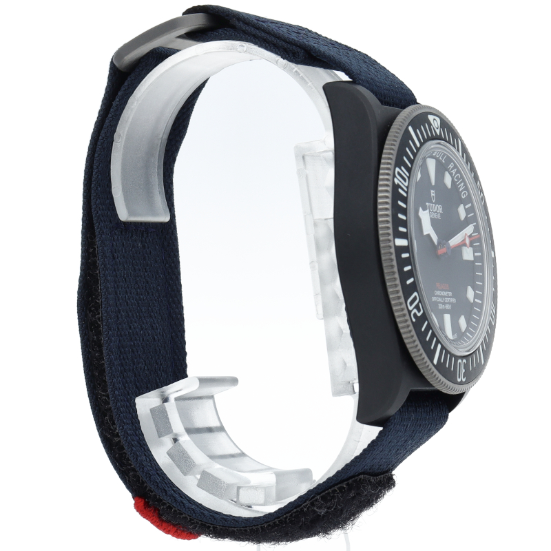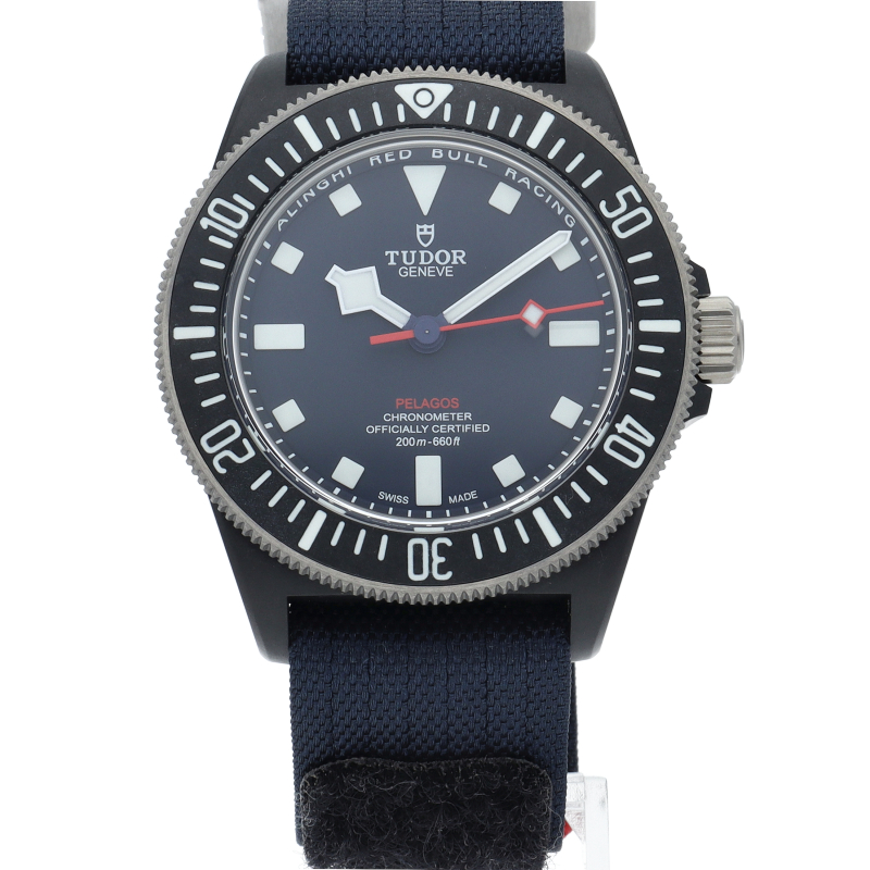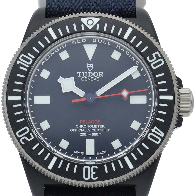 チューダーの人気モデル「ぺラゴス」から、国際ヨットレースに参戦しているチーム「アリンギ・レッドブル・レーシング」とのパートナーシップ記念モデルが登場。ムーブメントは自社製キャリバーMT5602を搭載。70時間のパワーリザーブを誇ります。防水機能は200メートル。素材をカーボンコンポジット製にすることにより、軽く普段使いにも最適です。