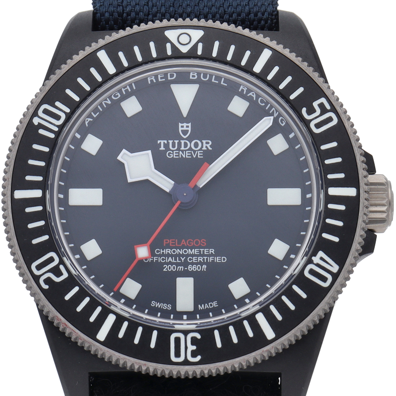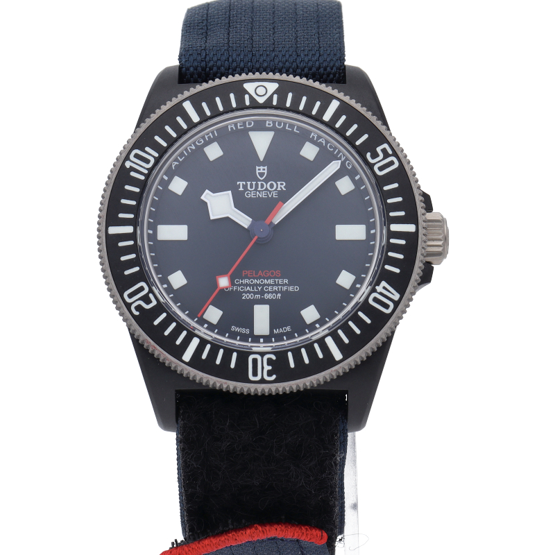 チューダーの人気モデル「ぺラゴス」から、国際ヨットレースに参戦しているチーム「アリンギ・レッドブル・レーシング」とのパートナーシップ記念モデルが登場。ムーブメントは自社製キャリバーMT5602を搭載。70時間のパワーリザーブを誇ります。防水機能は200メートル。素材をカーボンコンポジット製にすることにより、軽く普段使いにも最適です。