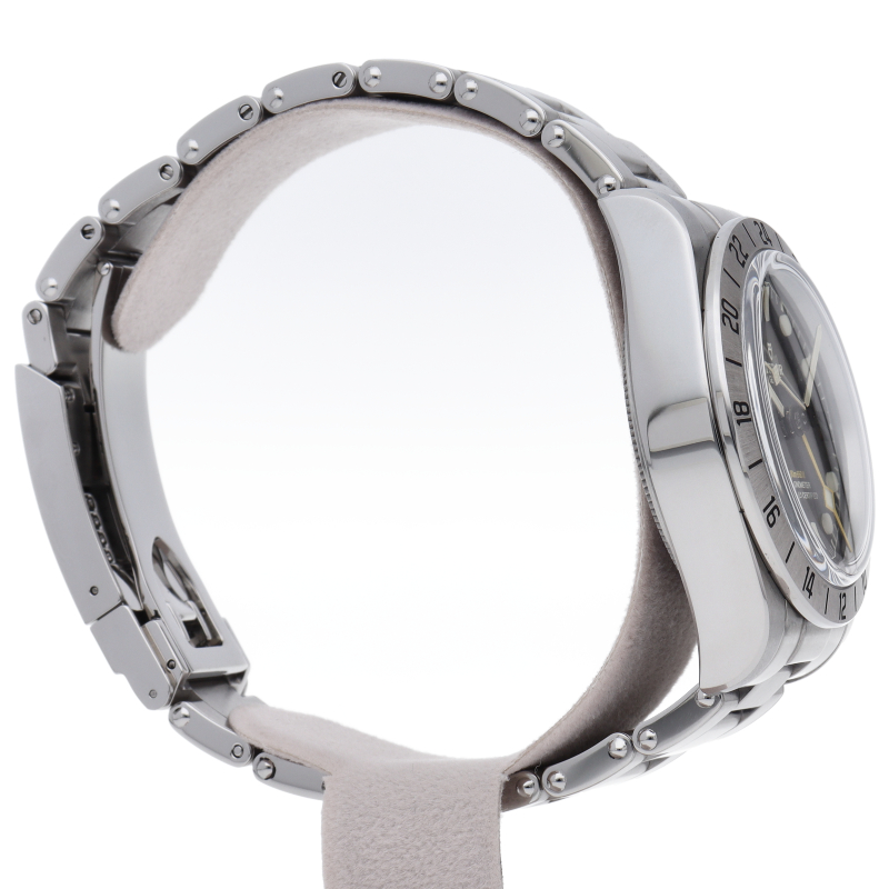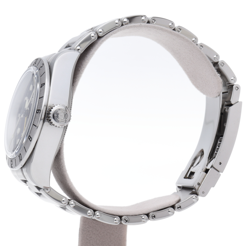 固定式のベゼルに刻印された24時間表示、大きめのイエローの24時間針等、ロレックスの初代エクスプローラー2を彷彿とさせるデザインで話題を呼んだブラックベイプロ。人気機種のフィフティーエイトと同じ39ミリケースを採用しており、日本人の手首周りにも馴染みやすいKサイズ感です。ムーブメントはクロノメーター認定を受け70時間のパワーリザーブを有する、両方向巻上げ式の自社製MT5652を搭載しています。