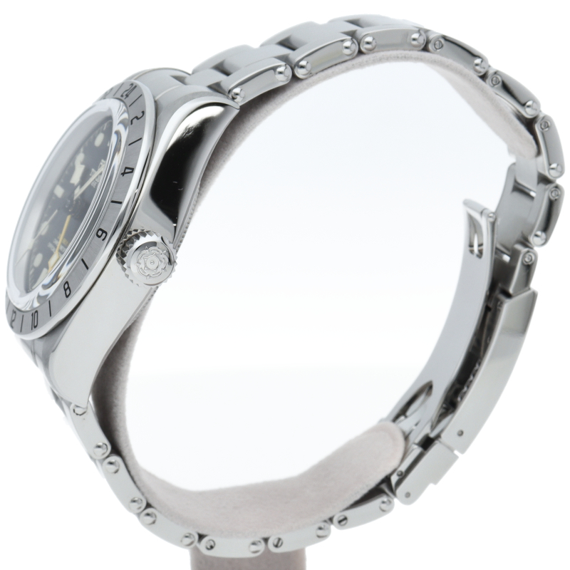 固定式のベゼルに刻印された24時間表示、大きめのイエローの24時間針等、ロレックスの初代エクスプローラー2を彷彿とさせるデザインで話題を呼んだブラックベイプロ。人気機種のフィフティーエイトと同じ39ミリケースを採用しており、日本人の手首周りにも馴染みやすいKサイズ感です。ムーブメントはクロノメーター認定を受け70時間のパワーリザーブを有する、両方向巻上げ式の自社製MT5652を搭載しています。