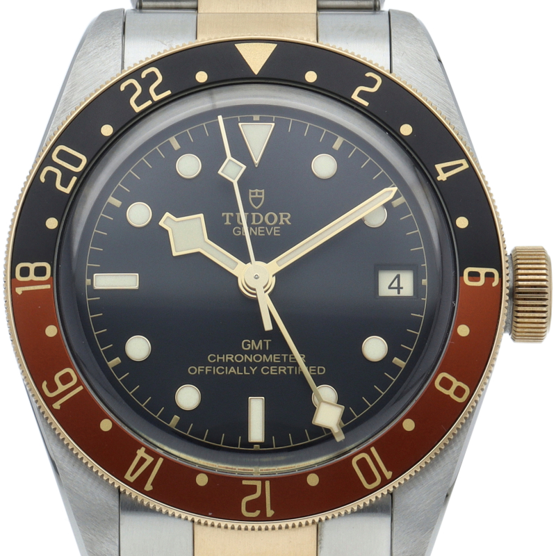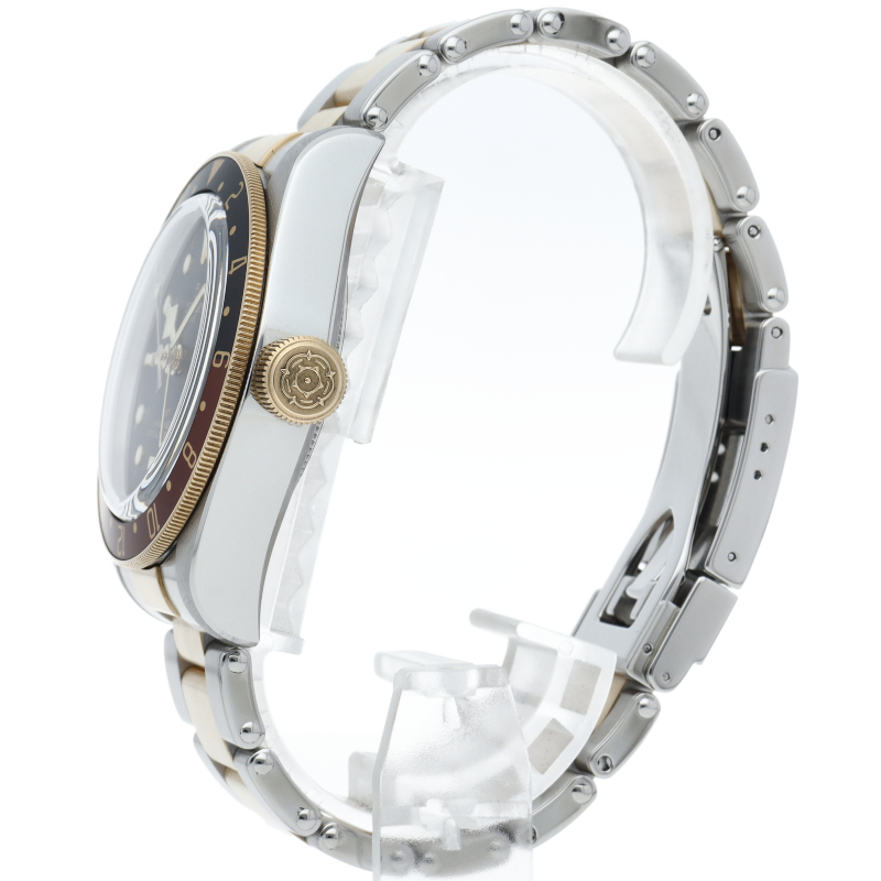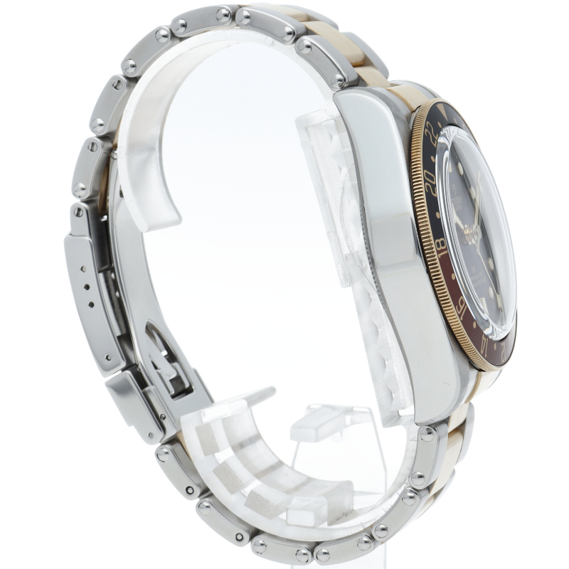 2022年の新作となる「ブラック/ブラウン」ベゼルを装備した「ヘリテージブラックベイ」。チュードルを代表するスポーツモデル「ブラックベイ」のGMT搭載モデル。搭載されている自社製ムーブメント「MT5652」は、70時間のパワーリザーブとクロノメーター認定を受けた高精度を誇り、実用性にも優れた1本となっています。