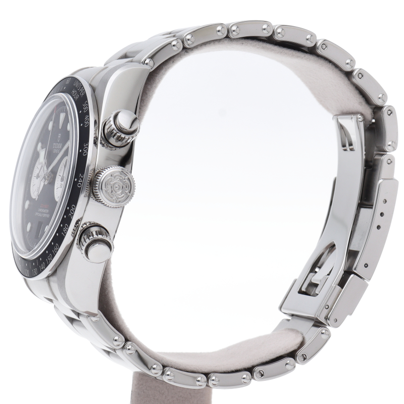チューダーの初期のサブマリーナに使用されていた通称“イカ針”を採用した「ブラックベイ」。2021年新作。70時間パワーリザーブの自社製ムーブメント「MT5813」搭載。チュードル。