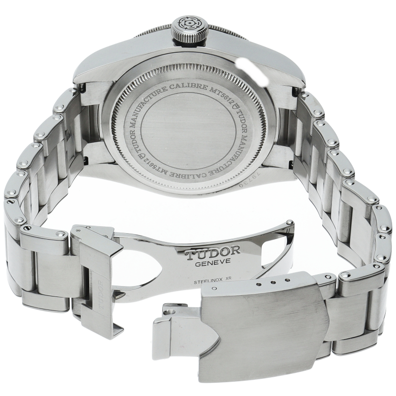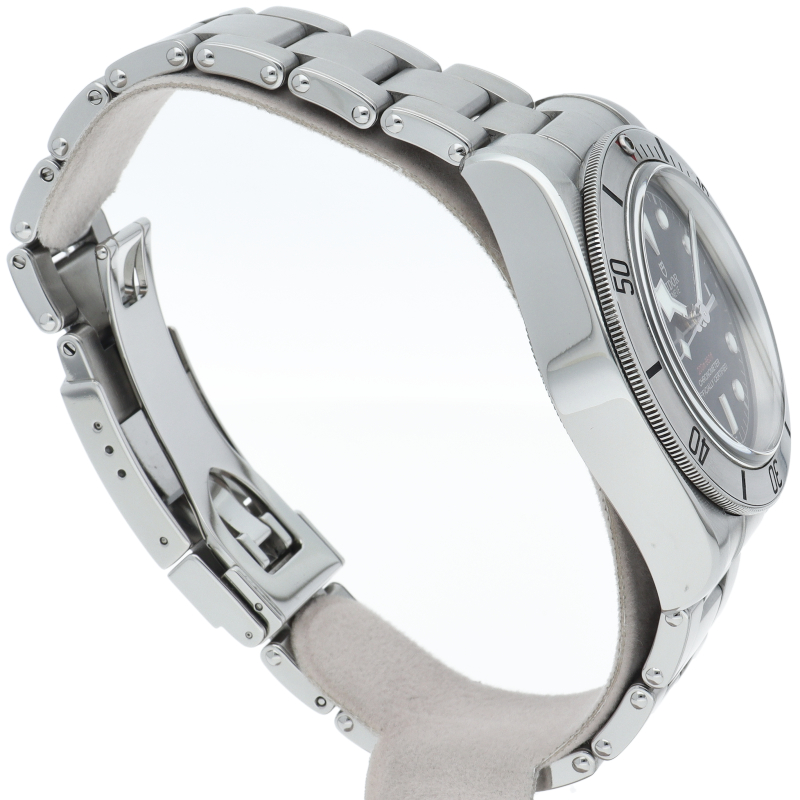 通称「イカ針」が特徴の「ヘリテージ・ブラックベイ」。2012年発表の前作「79220」から2016年にモデルチェンジされました。薔薇のロゴが盾ロゴとなり、6時位置にクロノメーター表記があらたに追加。さらにブレスレットがヴィンテージのテイストを色濃く残すリベット仕様となり、ヘリテージモデルらしい魅力が加えられています。