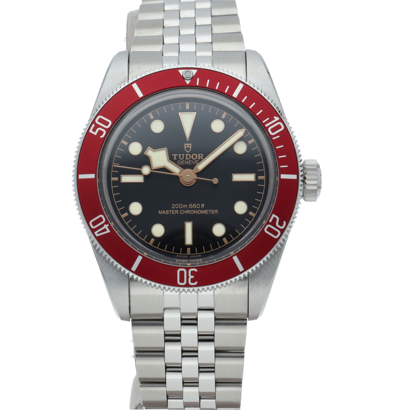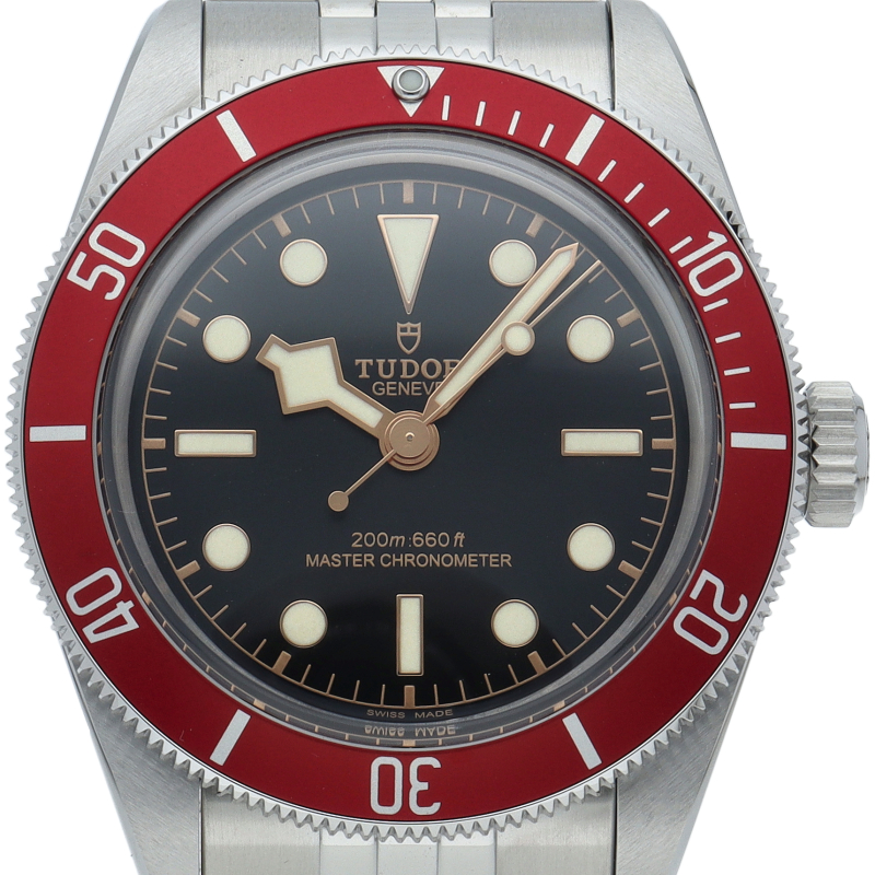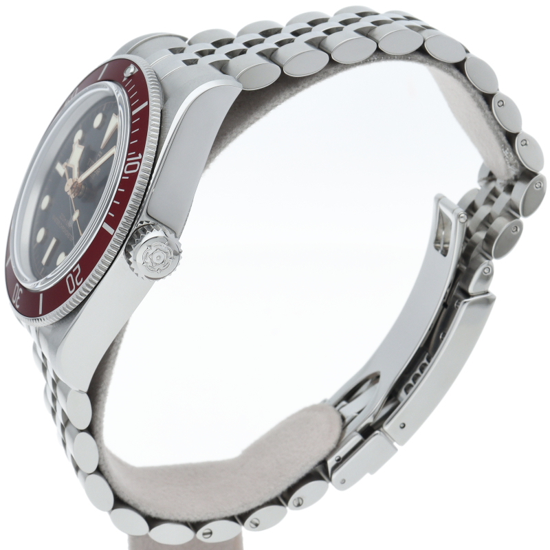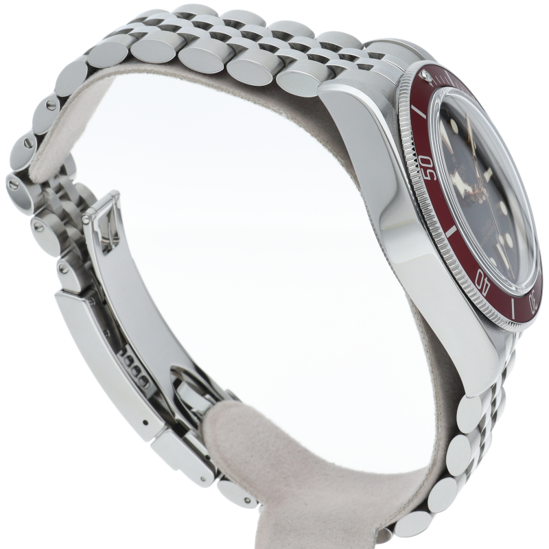 チューダーの初期のサブマリーナに使用されていた通称“イカ針”を採用した「ブラックベイ」の2023年に発表されたモデル。バーガンディ色のベゼルが追加され、防水性、パワーリザーブ、耐磁性、精度のテストを経て、METASマスタークロノメーター認定を受けています。