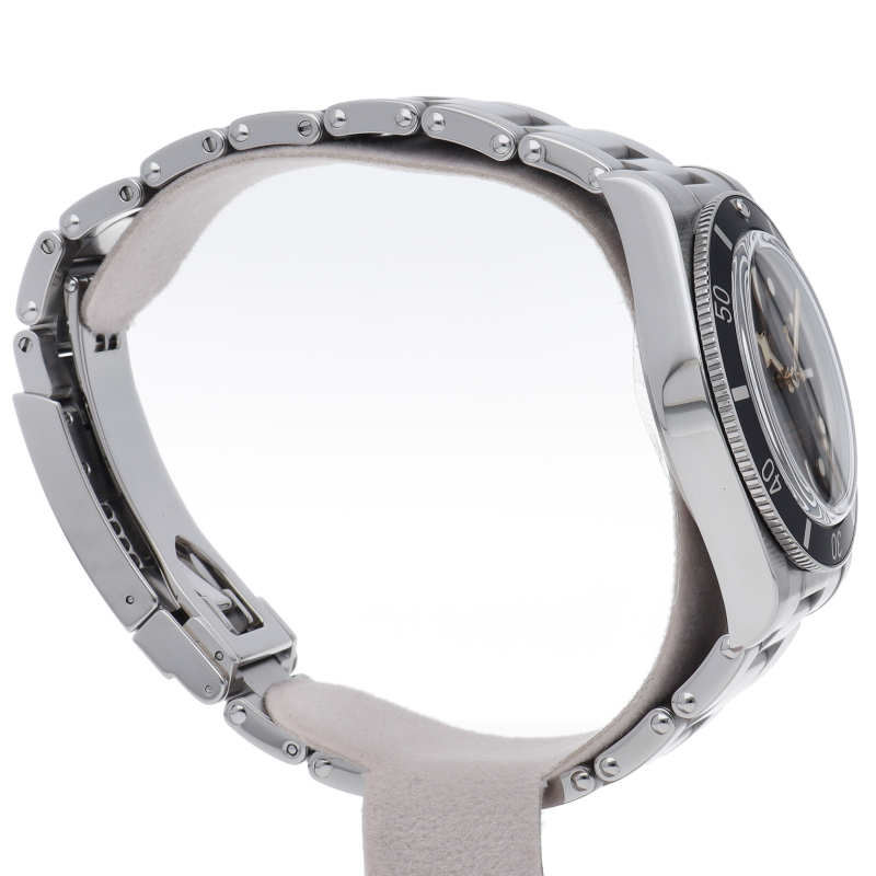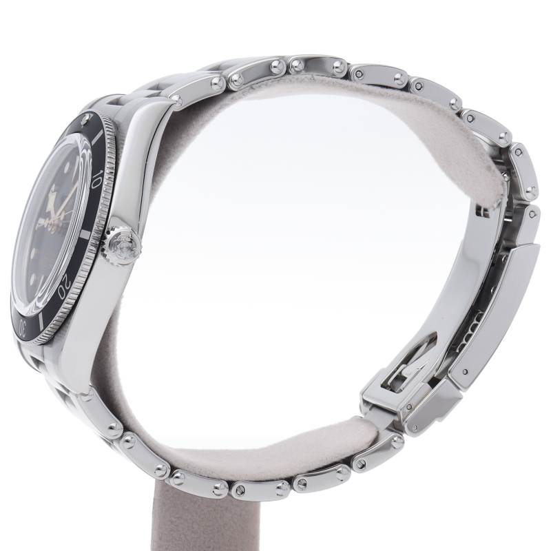 チューダーの初期のサブマリーナに使用されていた通称“イカ針”を採用した「ブラックベイ」。こちらはステンレスタイプで、ケース径37mmモデル。1960年代までのロレックスやチューダーに使われていたリベットブレス仕様のダイバーウォッチです。