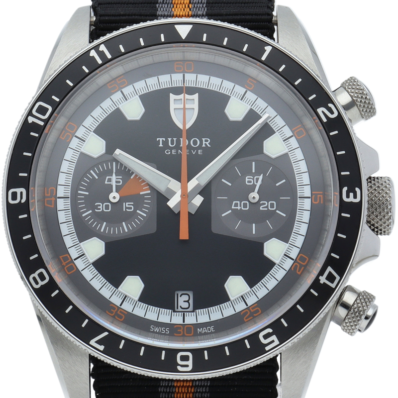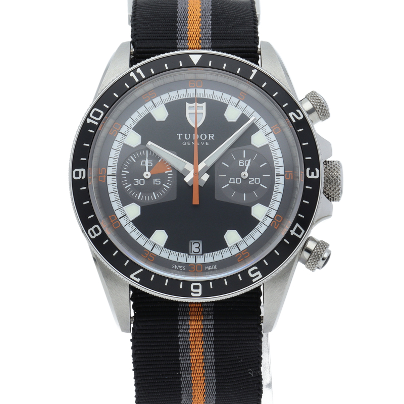 チュードルの話題作「ヘリテージクロノ」。人気のモンテカルロの復刻版ですが、オリジナルとは違い、ベゼルは回転ベゼルのみの展開になります。 ケース径を現代のトレンドに合わせて大型化しているのもポイントです。