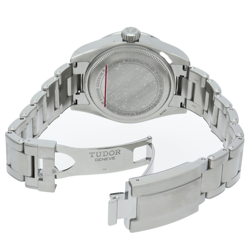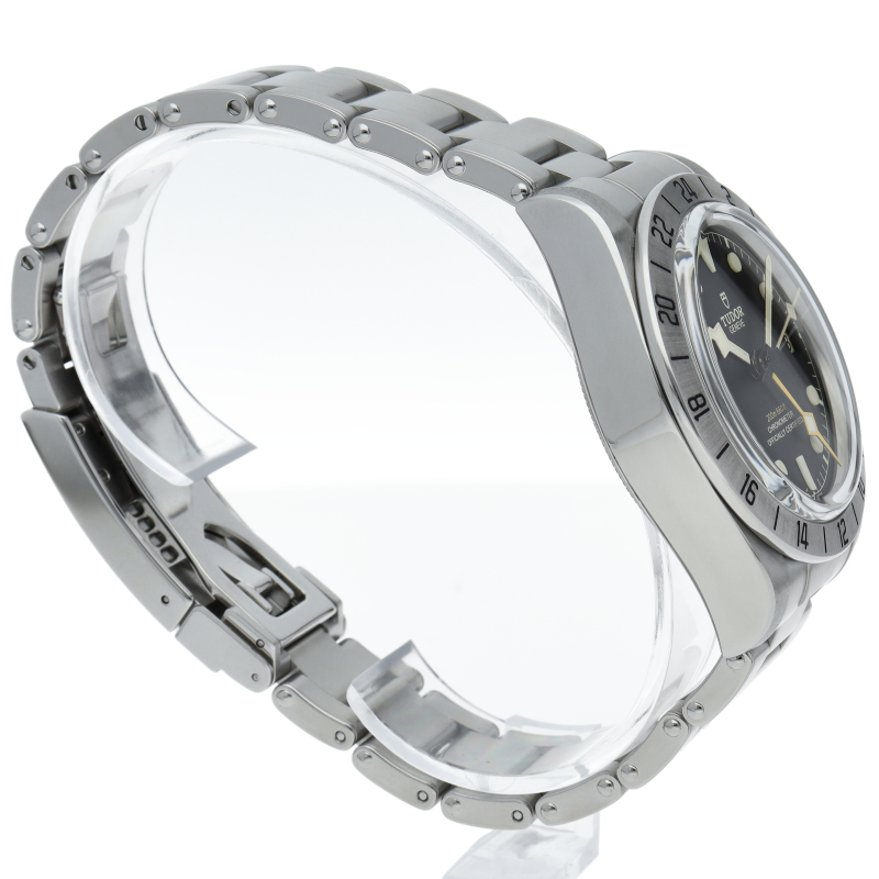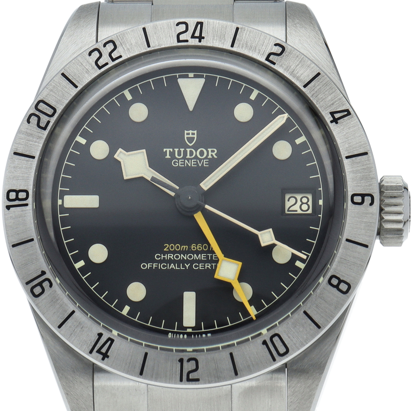 固定式のベゼルに刻印された24時間表示、大きめのイエローの24時間針等、ロレックスの初代エクスプローラー2を彷彿とさせるデザインで話題を呼んだブラックベイプロ。人気機種のフィフティーエイトと同じ39ミリケースを採用しており、日本人の手首周りにも馴染みやすいKサイズ感です。ムーブメントはクロノメーター認定を受け70時間のパワーリザーブを有する、両方向巻上げ式の自社製MT5652を搭載しています。