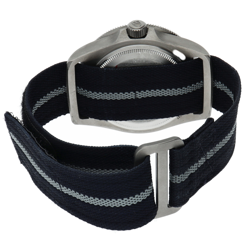 2021年新作。パートナーシップを結ぶ、フランス海軍特殊部隊との共同開発モデル。通称「イカサブ」と呼ばる針やスクエアのインデックスなど、過去のモデルのディテールを現代流にリファインしたモデルです。ケースにはチタニウムを素材を採用。ムーブメントは、70時間パワーリザーブの自社製キャリバー「MT5602」を搭載し、クロノメーター規格を取得しています。