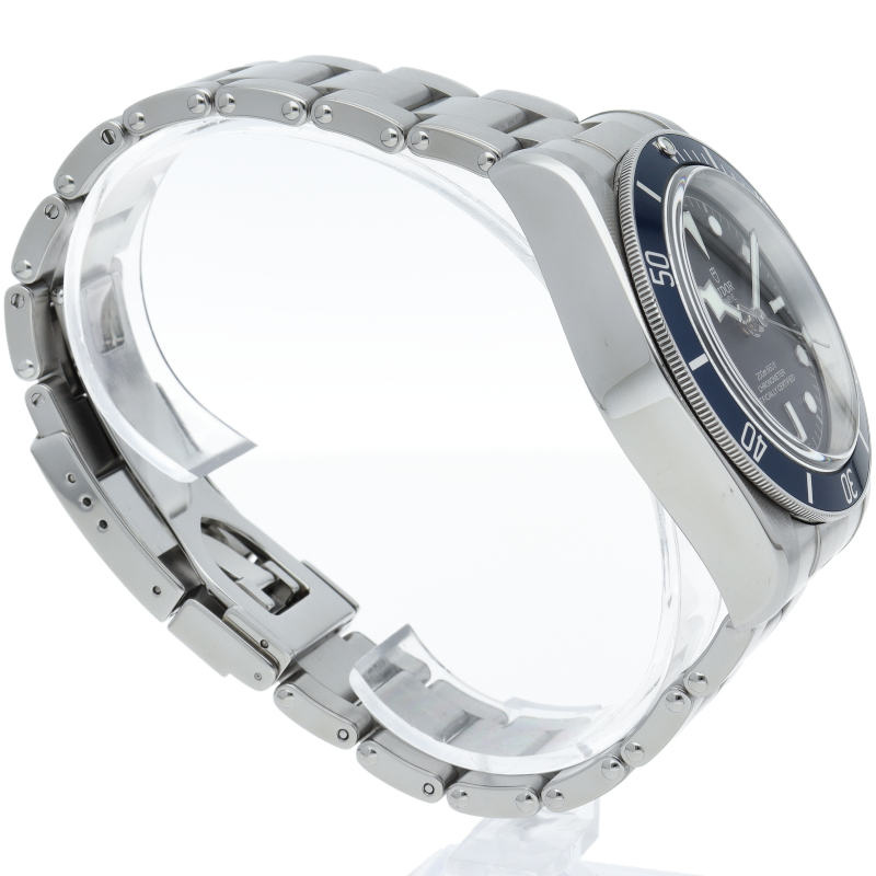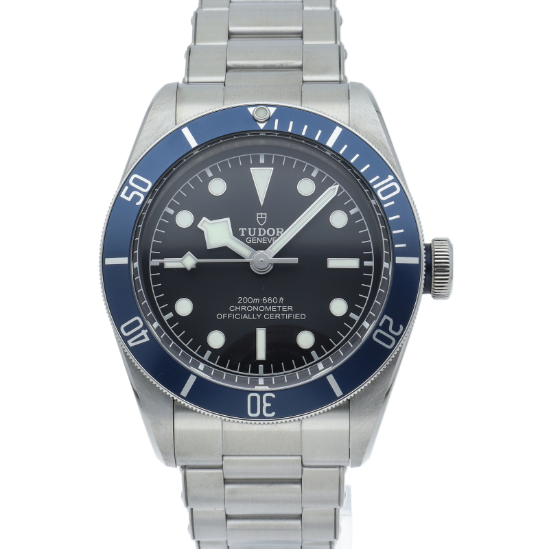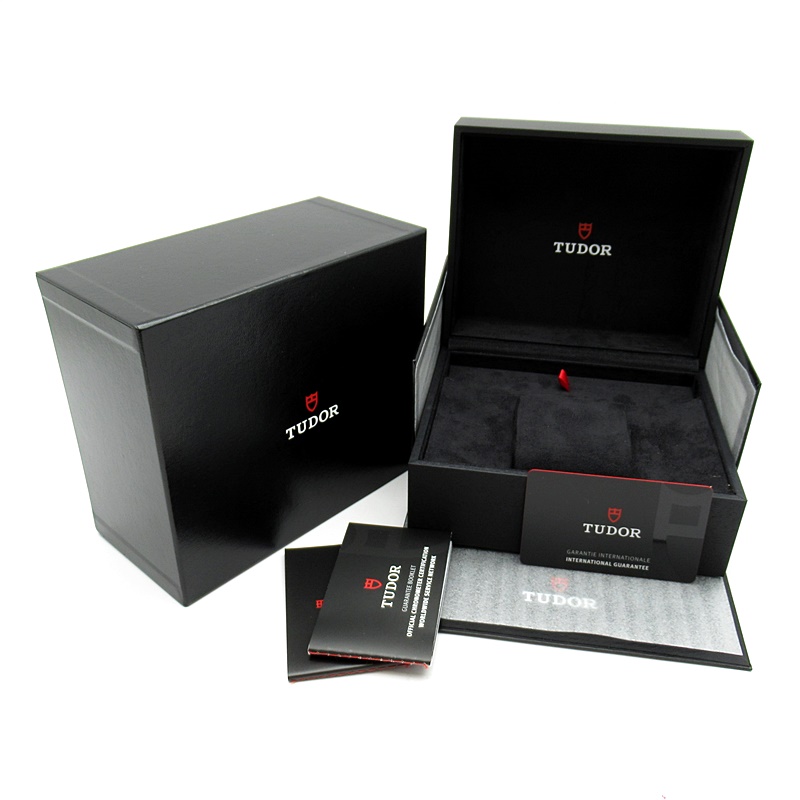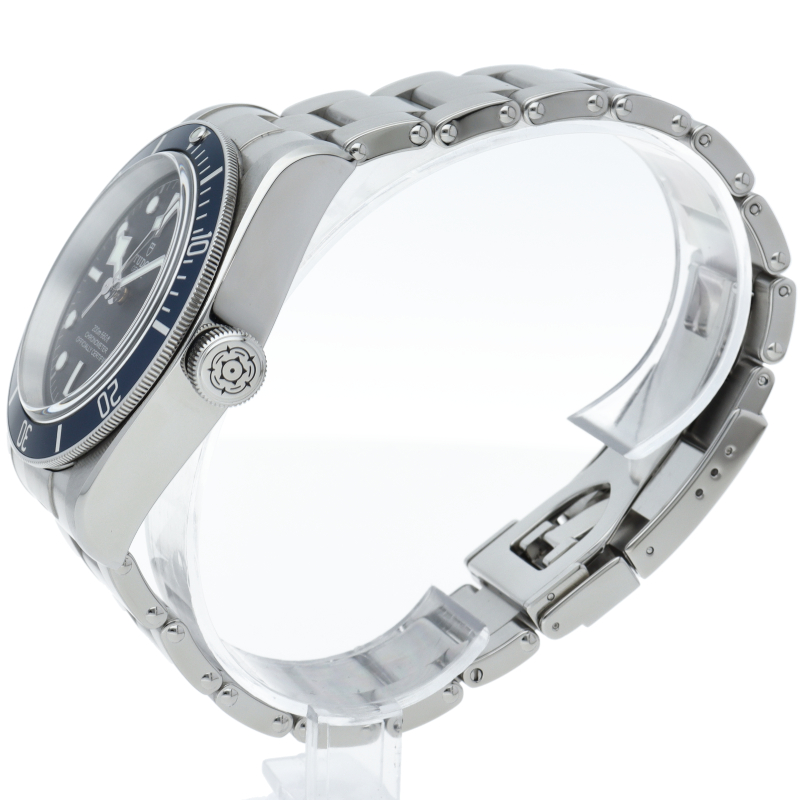 チューダーの初期のサブマリーナに使用されていた通称“イカ針”を採用した「ブラックベイ」2016年発表のニューモデルです。ダイヤルには現行タイプの「盾」マークがプリントされていますが、リューズトップにはヴィンテージ感の漂う「バラ」マークを刻印。ムーブメントにはCOSC公認のクロノメーターを取得した70時間パワーリザーブの自社製キャリバー「MT5602」を搭載。