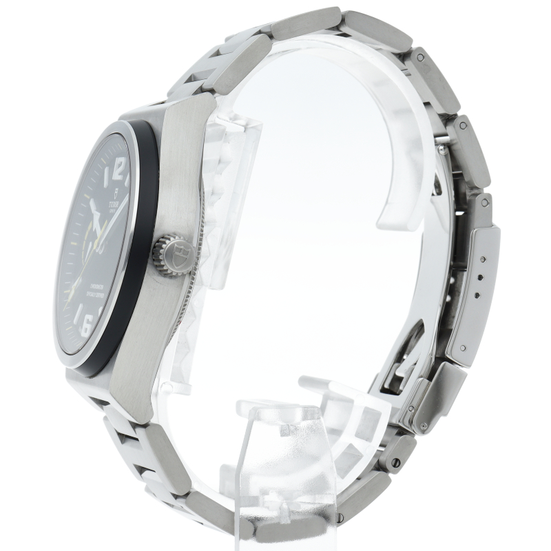 2015年待望の発表となった、ノースフラッグ91210N。ステンレス素材とセラミック素材のダブルベゼルで更なる耐久性の飛躍に成功した、冒険家の為のモデルです。搭載されているのはチューダー初のクロノメータームーブメントである、Cal.MT5621。70時間ものパワーリザーブを誇るうえ、9時位置のインジケーターで残量確認が可能となっています。