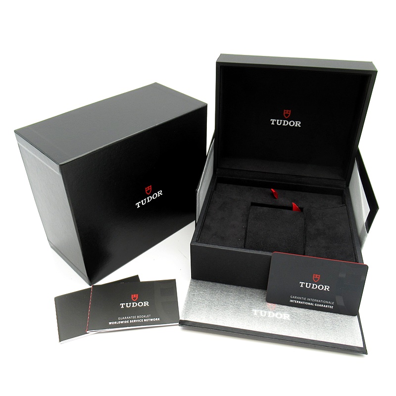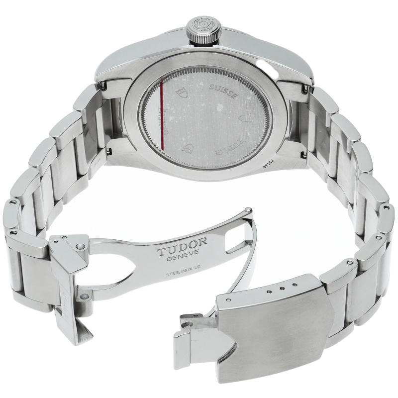 2017年のバーゼルワールドで発表された41mmケースのヘリテージブラックベイ41。日本では通称「イカ針」と呼ばれ、ヴィンテージのチューダー サブマリーナの代名詞とも言われる「スノーフレーク針」を採用。回転ベゼルがなくなったことで強調されるリューズには現行モデルの盾マークではなくバラのマークがエングレービングされています。