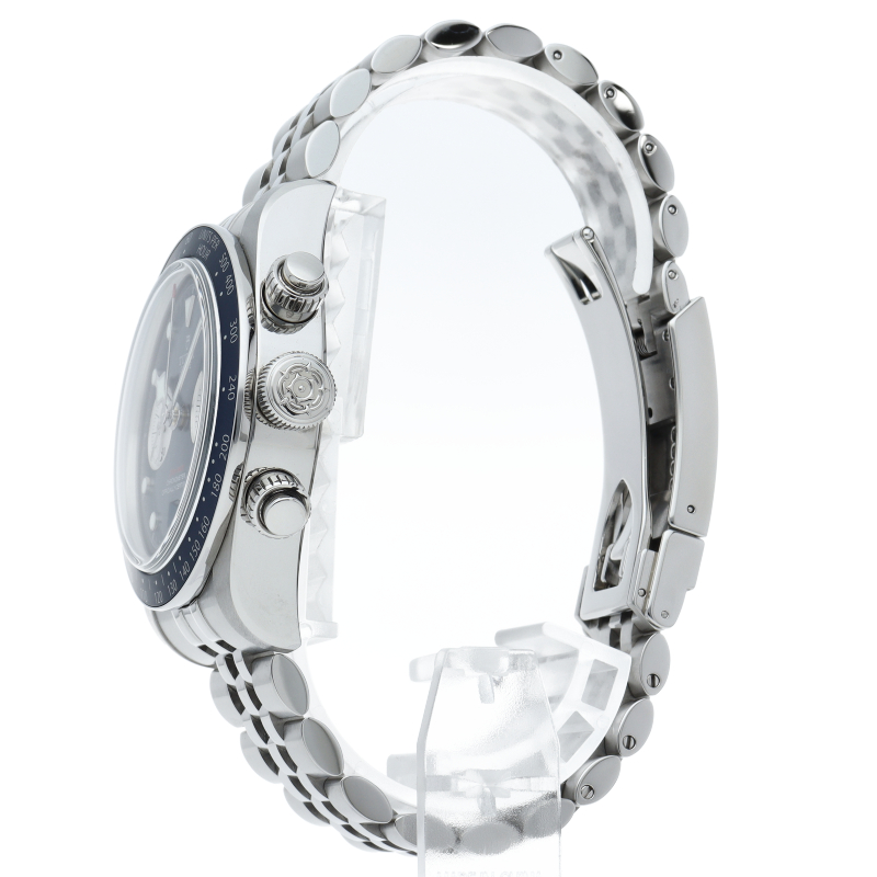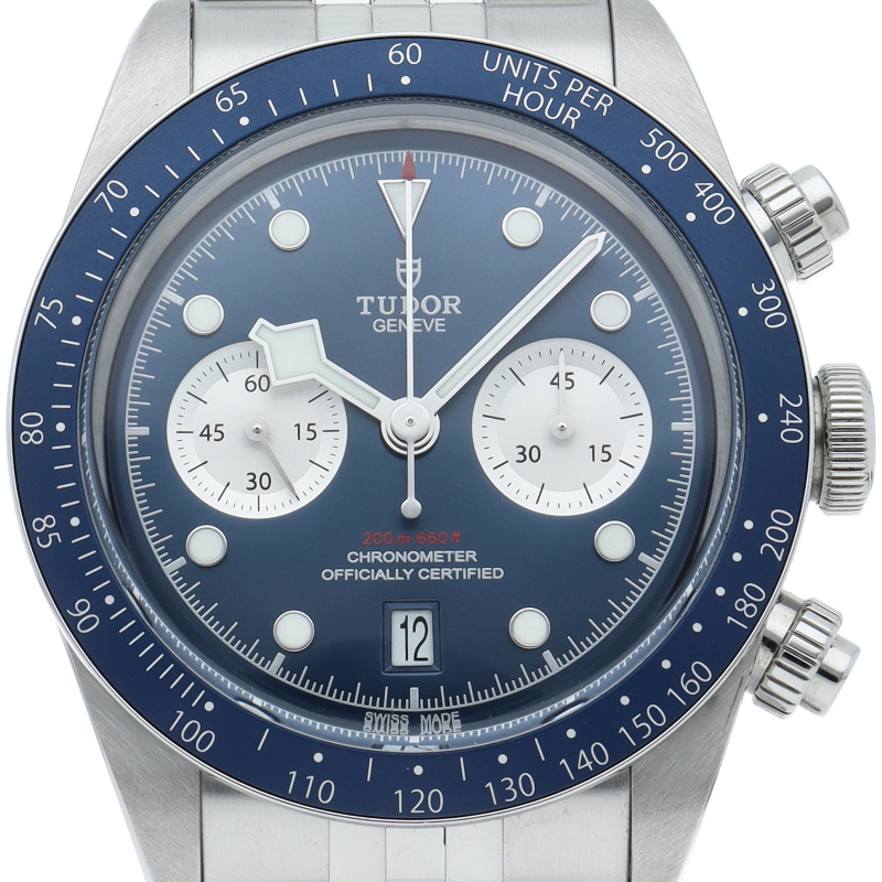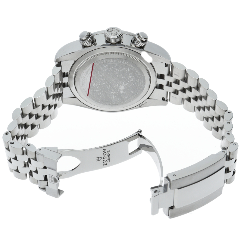 チューダーダイバーズウォッチのアイコンとなっている「スノーフレーク針」と初期のチューダー クロノグラフから着想を得た、45分カウンターと6時位置のカレンダーはそのままに、鮮やかなブルーのダイヤルとベゼルを備えます。セルフアジャストが可能な“T-fit”クラスプを搭載し、簡単な操作で8mmの長さを5段階で調節可能になっており自分にぴったりなつけ心地に調整することができます。