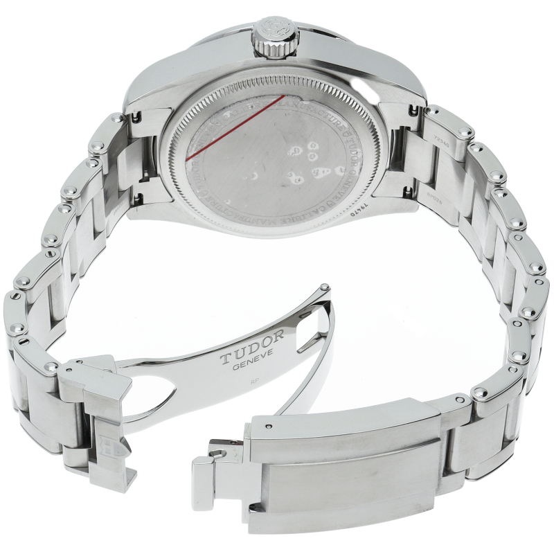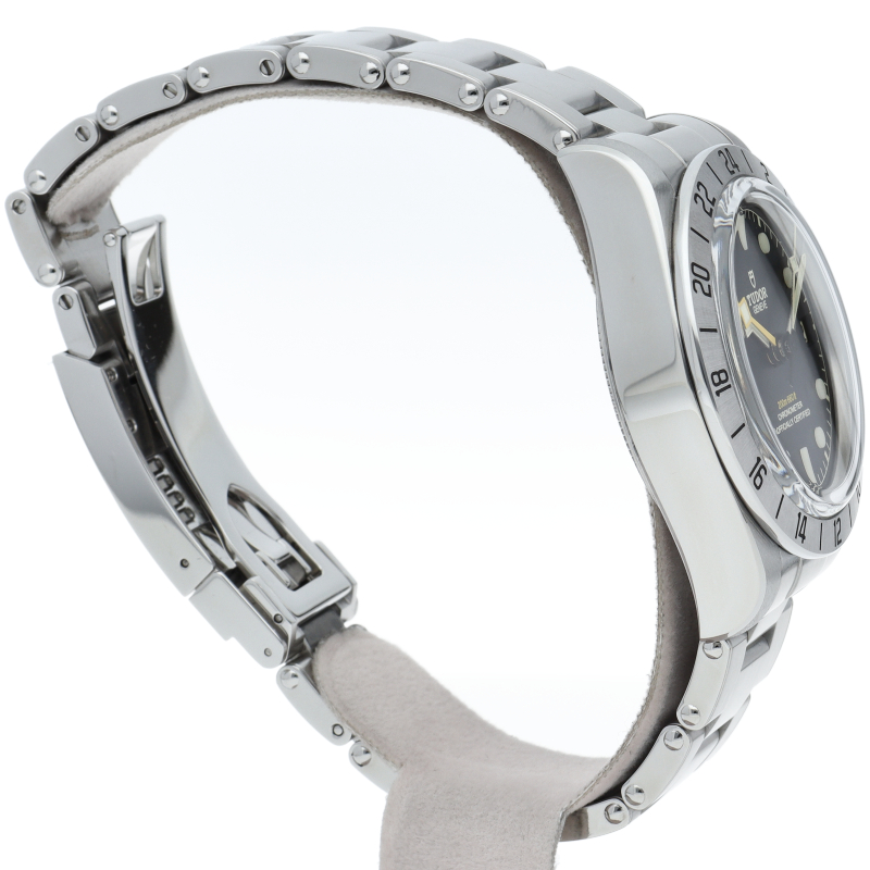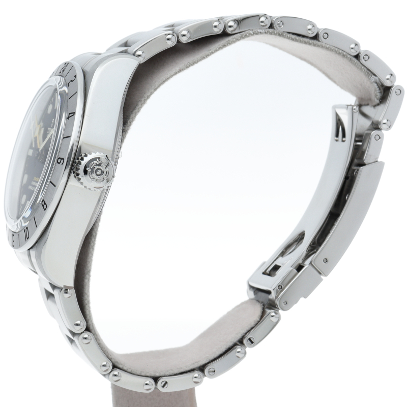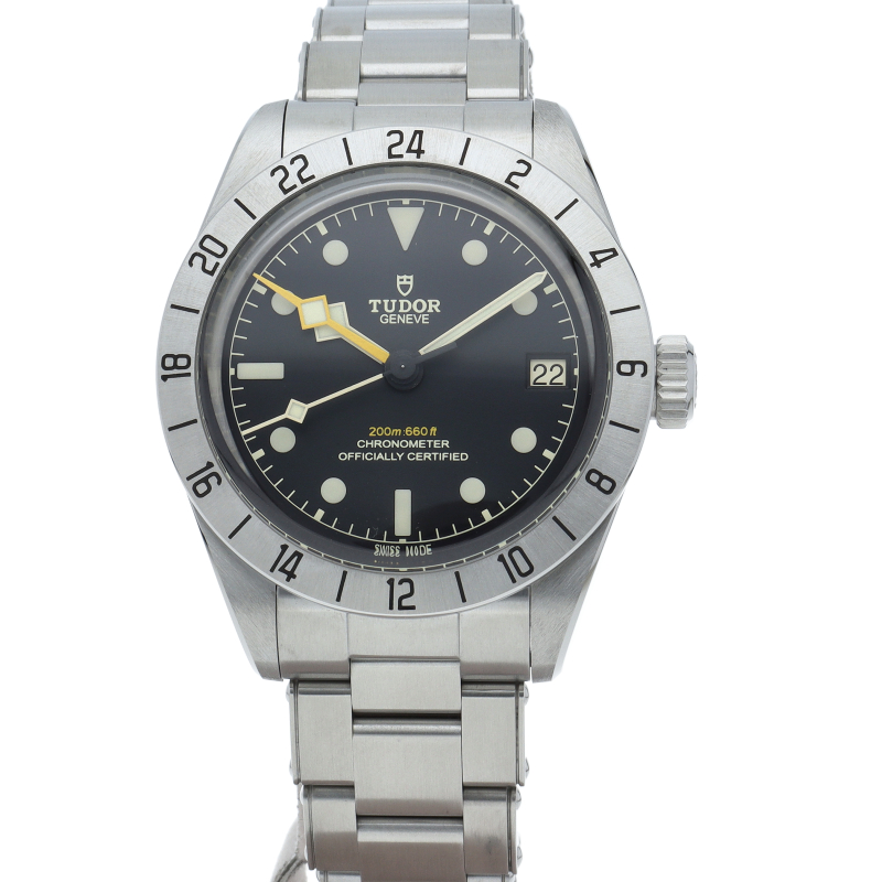 固定式のベゼルに刻印された24時間表示、大きめのイエローの24時間針等、ロレックスの初代エクスプローラー2を彷彿とさせるデザインで話題を呼んだブラックベイプロ。人気機種のフィフティーエイトと同じ39ミリケースを採用しており、日本人の手首周りにも馴染みやすいKサイズ感です。ムーブメントはクロノメーター認定を受け70時間のパワーリザーブを有する、両方向巻上げ式の自社製MT5652を搭載しています。