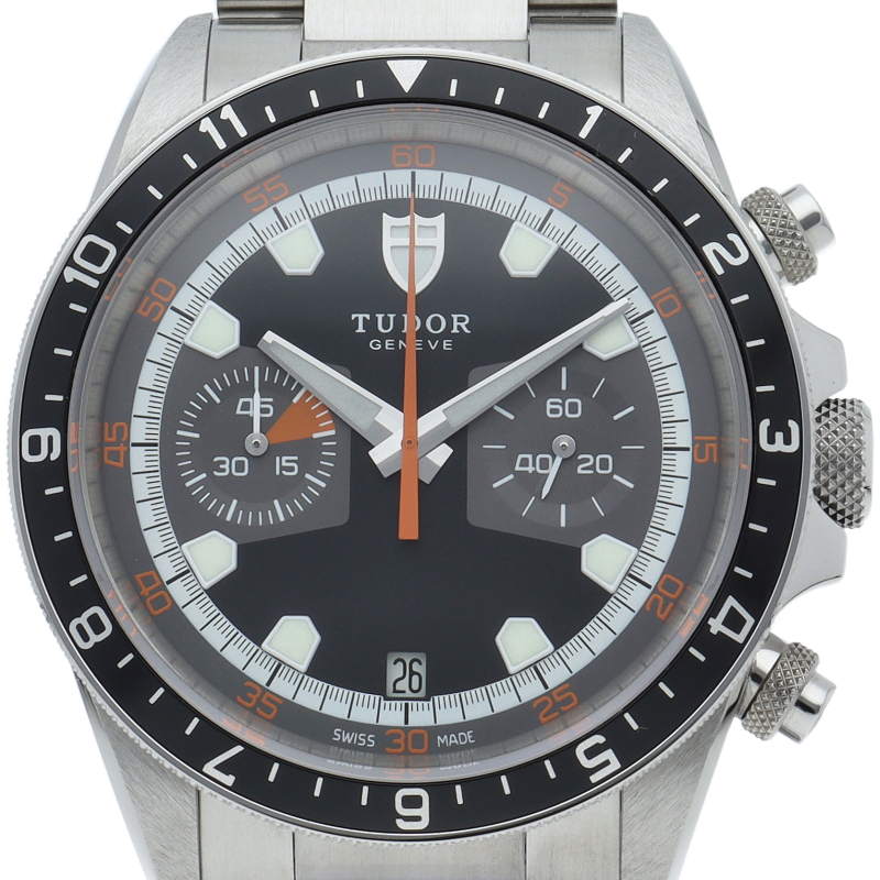チュードルの話題作「ヘリテージクロノ」。人気のモンテカルロの復刻版ですが、オリジナルとは違い、ベゼルは回転ベゼルのみの展開になります。 ケース径を現代のトレンドに合わせて大型化しているのもポイントです。