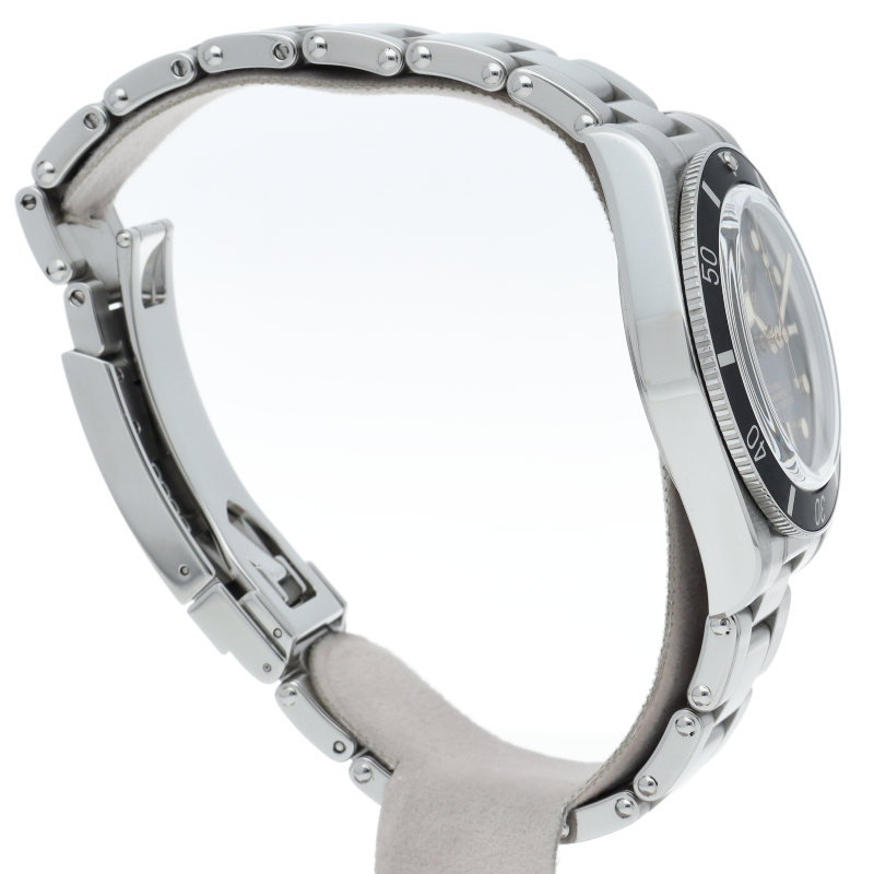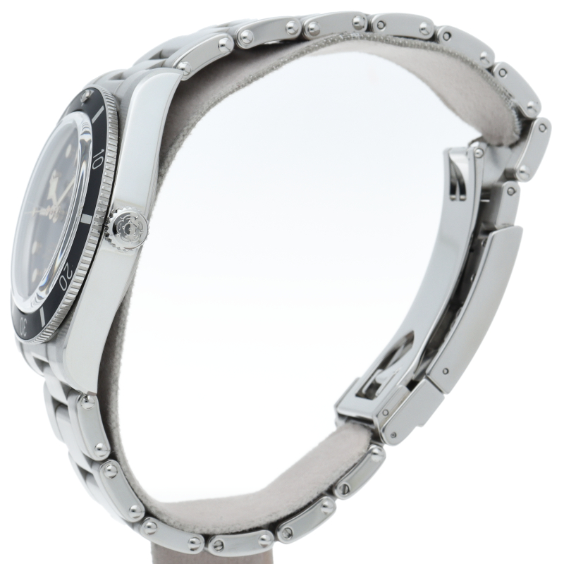 チューダーの初期のサブマリーナに使用されていた通称“イカ針”を採用した「ブラックベイ」。こちらはステンレスタイプで、ケース径37mmモデル。1960年代までのロレックスやチューダーに使われていたリベットブレス仕様のダイバーウォッチです。