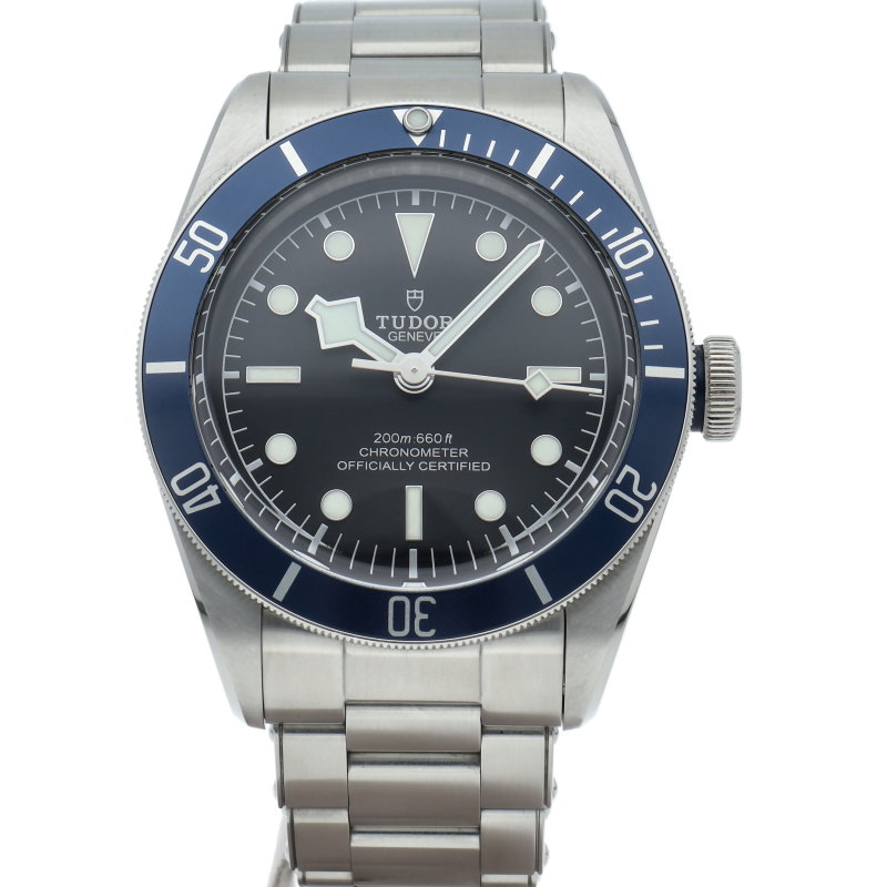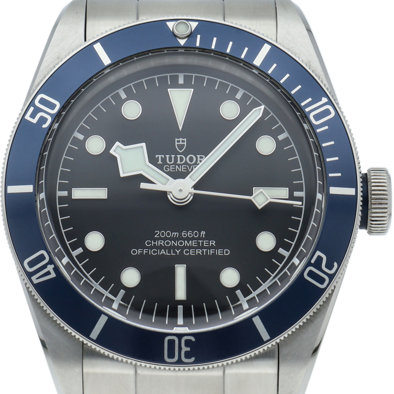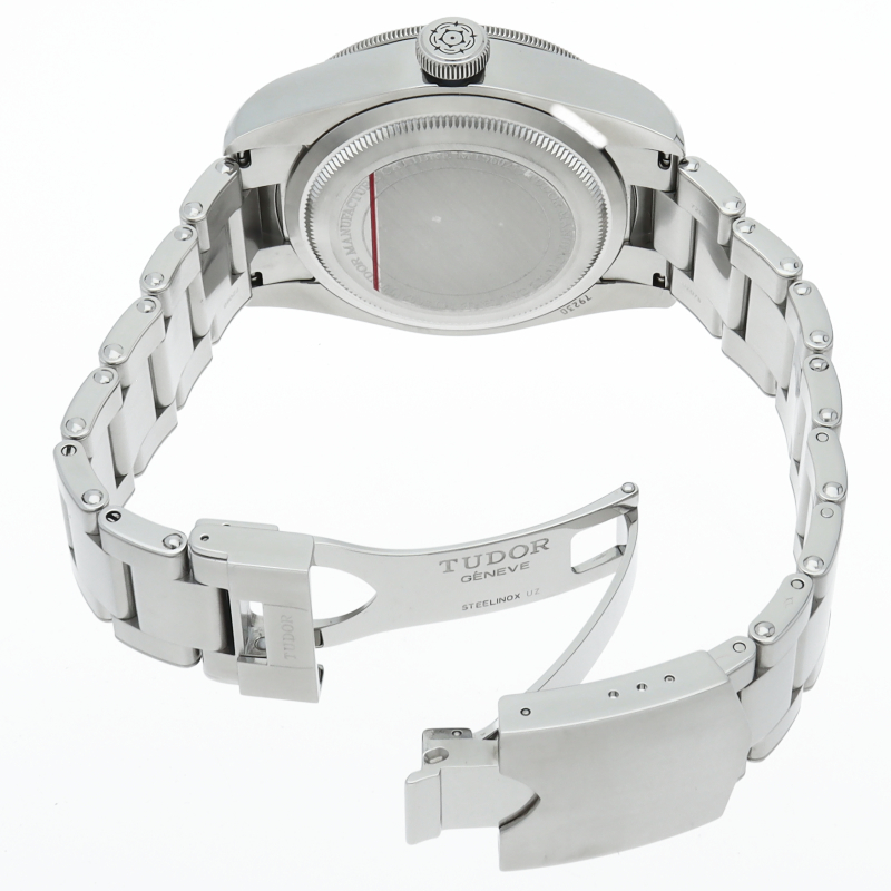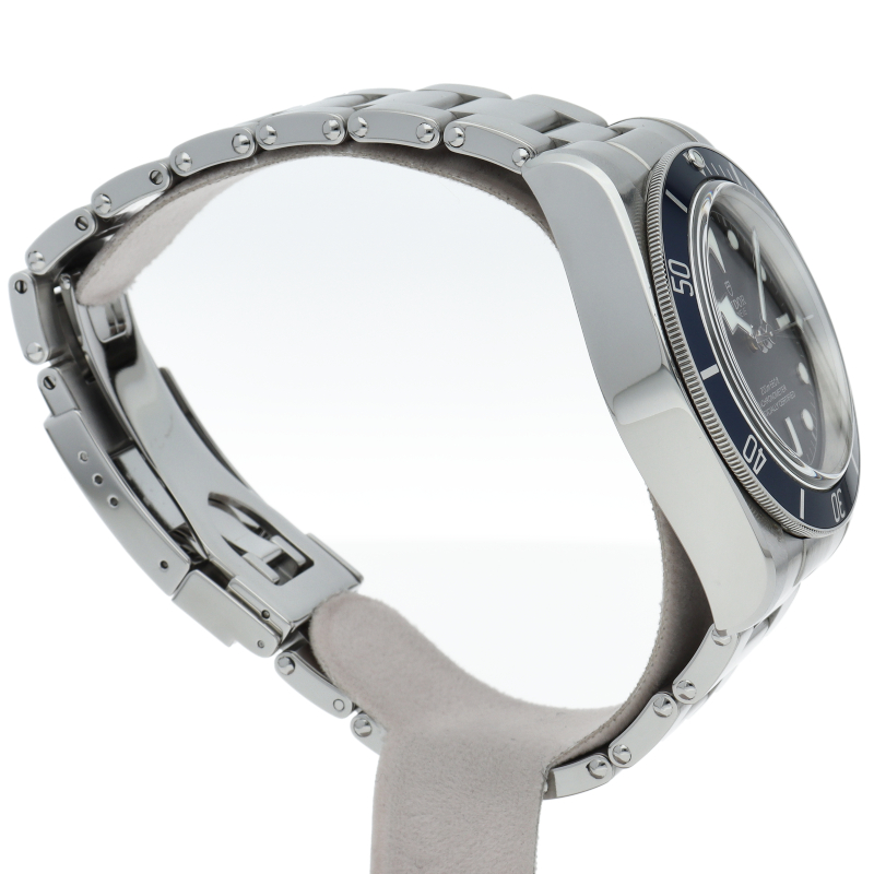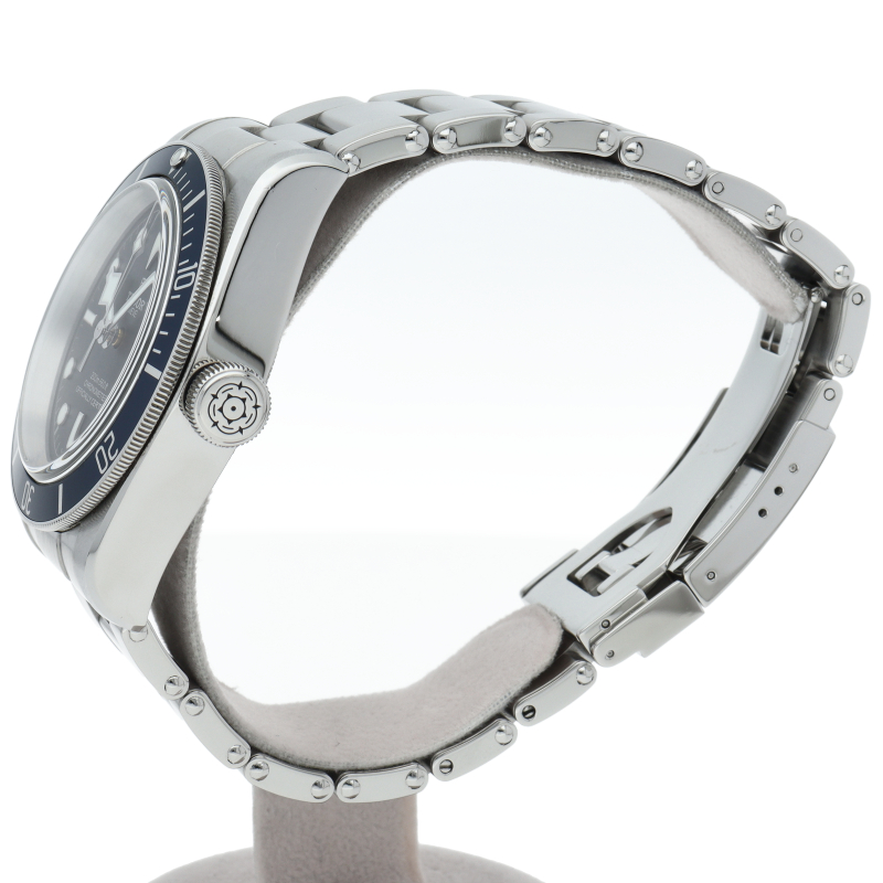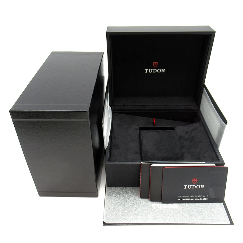チューダーの初期のサブマリーナに使用されていた通称“イカ針”を採用した「ブラックベイ」2016年発表のニューモデルです。ダイヤルには現行タイプの「盾」マークがプリントされていますが、リューズトップにはヴィンテージ感の漂う「バラ」マークを刻印。ムーブメントにはCOSC公認のクロノメーターを取得した70時間パワーリザーブの自社製キャリバー「MT5602」を搭載。