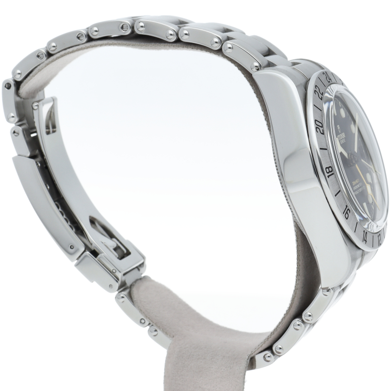 固定式のベゼルに刻印された24時間表示、大きめのイエローの24時間針等、ロレックスの初代エクスプローラー2を彷彿とさせるデザインで話題を呼んだブラックベイプロ。人気機種のフィフティーエイトと同じ39ミリケースを採用しており、日本人の手首周りにも馴染みやすいKサイズ感です。ムーブメントはクロノメーター認定を受け70時間のパワーリザーブを有する、両方向巻上げ式の自社製MT5652を搭載しています。
