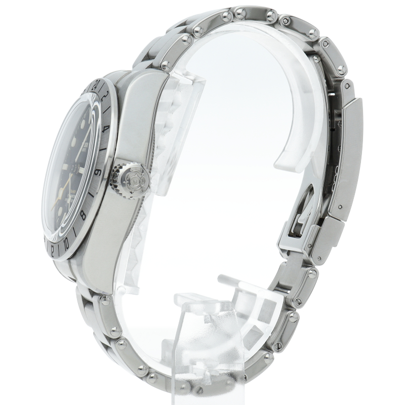 固定式のベゼルに刻印された24時間表示、大きめのイエローの24時間針等、ロレックスの初代エクスプローラー2を彷彿とさせるデザインで話題を呼んだブラックベイプロ。人気機種のフィフティーエイトと同じ39ミリケースを採用しており、日本人の手首周りにも馴染みやすいKサイズ感です。ムーブメントはクロノメーター認定を受け70時間のパワーリザーブを有する、両方向巻上げ式の自社製MT5652を搭載しています。