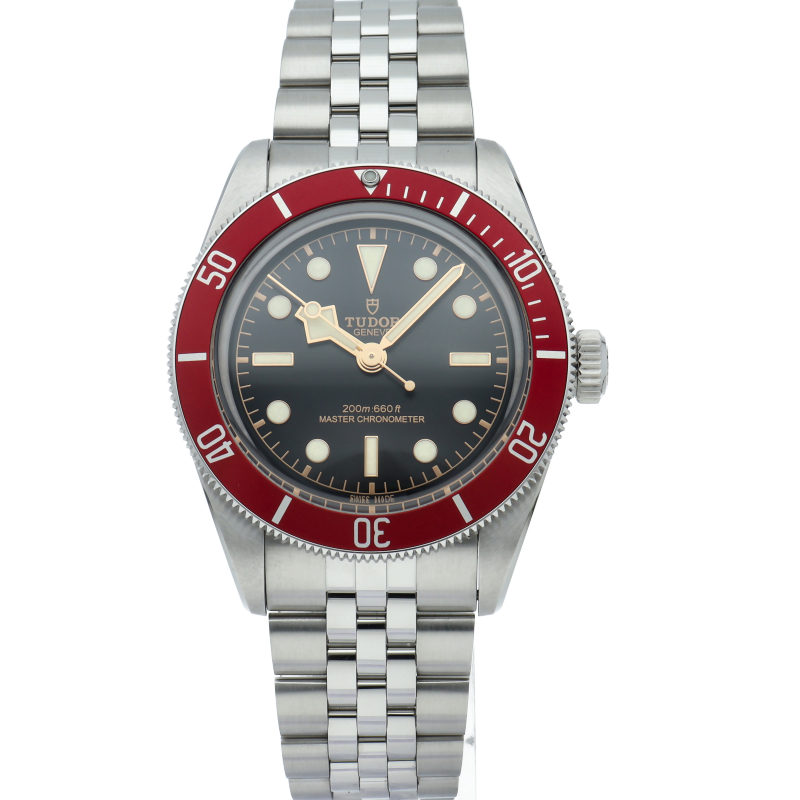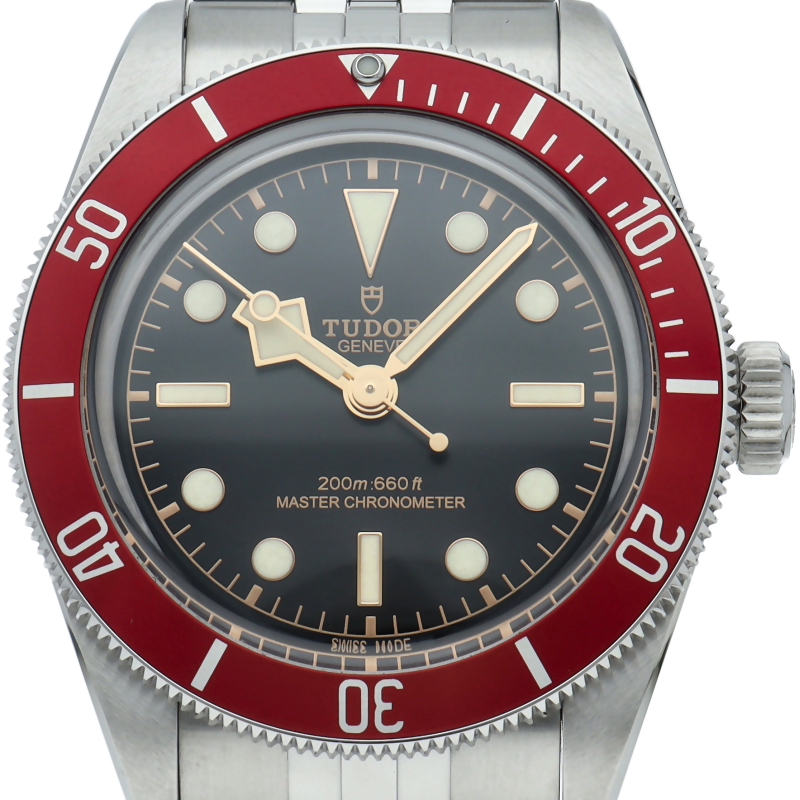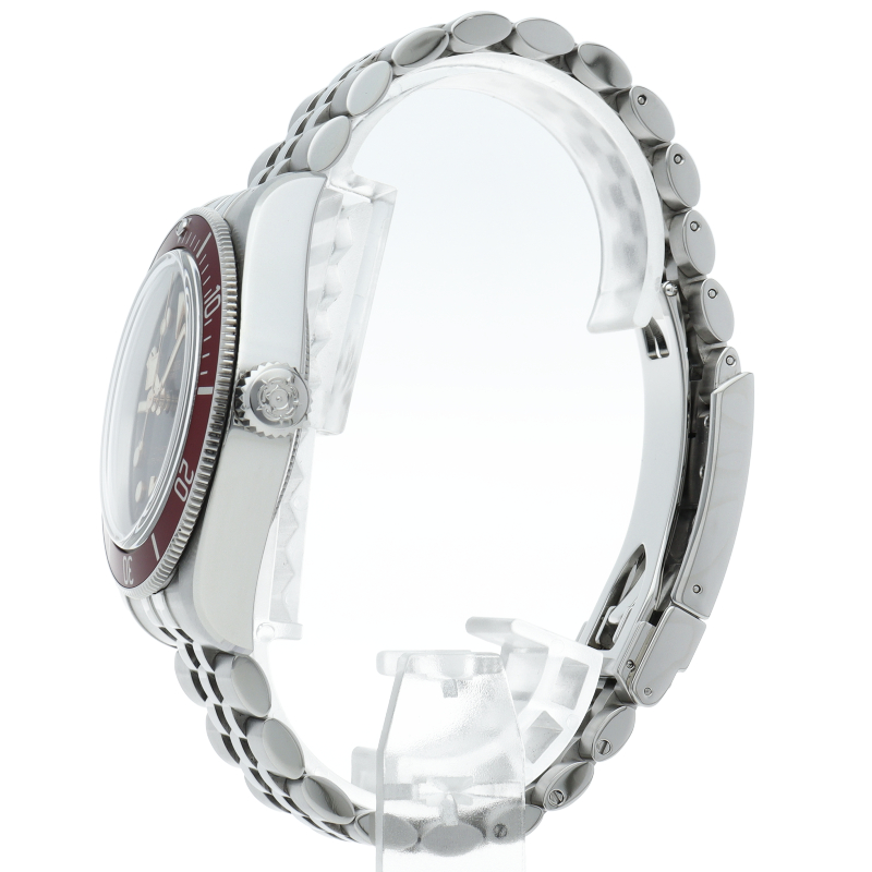 チューダーの初期のサブマリーナに使用されていた通称“イカ針”を採用した「ブラックベイ」の2023年に発表されたモデル。バーガンディ色のベゼルが追加され、防水性、パワーリザーブ、耐磁性、精度のテストを経て、METASマスタークロノメーター認定を受けています。