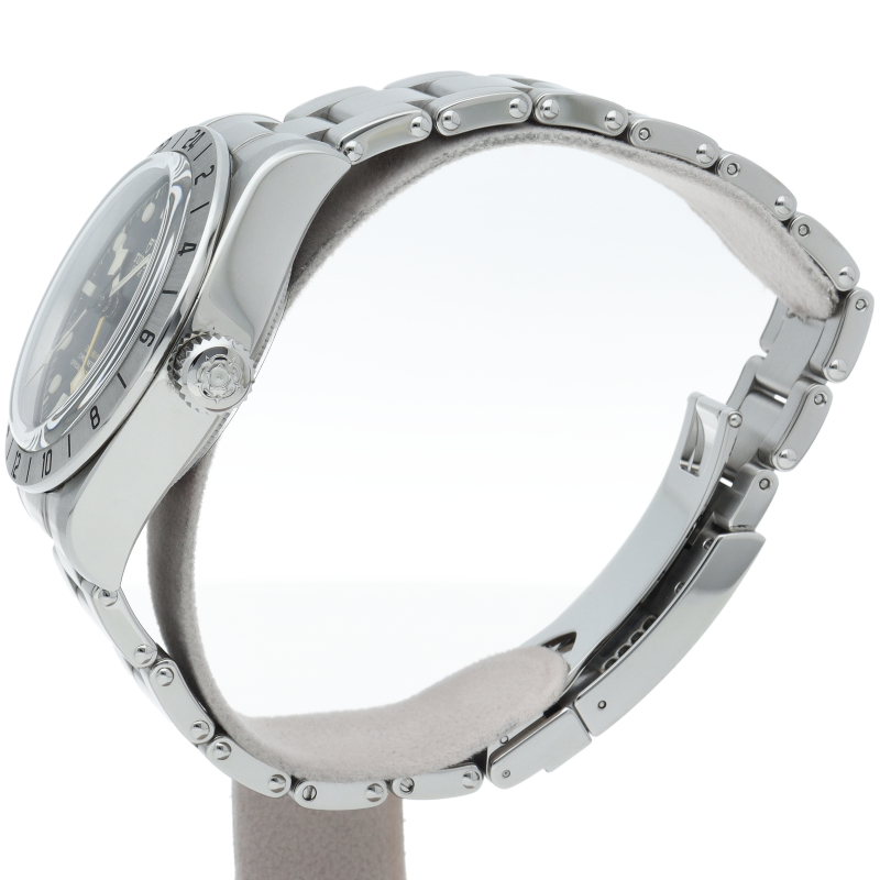 固定式のベゼルに刻印された24時間表示、大きめのイエローの24時間針等、ロレックスの初代エクスプローラー2を彷彿とさせるデザインで話題を呼んだブラックベイプロ。人気機種のフィフティーエイトと同じ39ミリケースを採用しており、日本人の手首周りにも馴染みやすいKサイズ感です。ムーブメントはクロノメーター認定を受け70時間のパワーリザーブを有する、両方向巻上げ式の自社製MT5652を搭載しています。