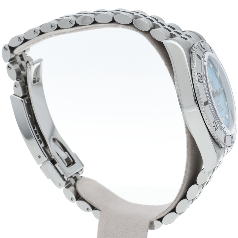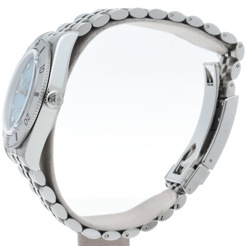 ブラックベイ 54 “ラグーンブルー”は、蒼く澄んだ波と真っ白な砂浜に陽光が降りそそぐ、どこか暖かい場所を思い起こさせる。37mmのケース、サンドテクスチャーの「ラグーンブルー」ダイアル、そしてミラーポリッシュ仕上げのベゼル。さらに、心地良く手首に馴染む5列リンクのブレスレットが、着用者を南国の浜辺へと誘う。最先端のマニュファクチュールキャリバーMT5400。