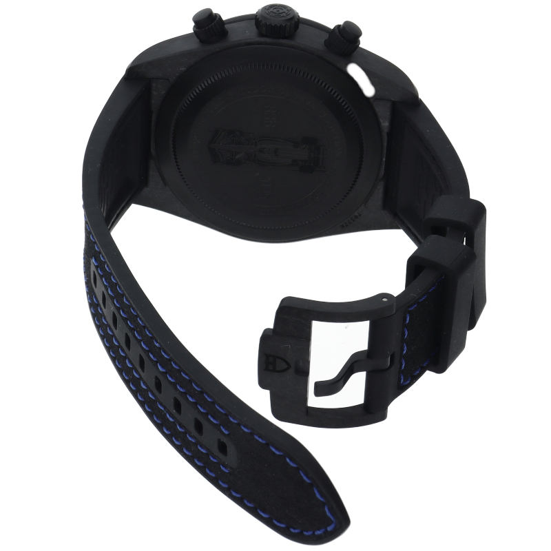 こちらは、visa Cash App Racing Bulls F1チームのマシンのカラーリングを反映し、ブラックベイ クロノ “カーボン 25”は、進化し続けるチューダーのモータースポーツの歴史における重要な年にオマージュを捧げた2,025本、製造モデル。PVD仕上げのチタニウム製ケースバックには、一本一本に固有の番号が刻まれています。