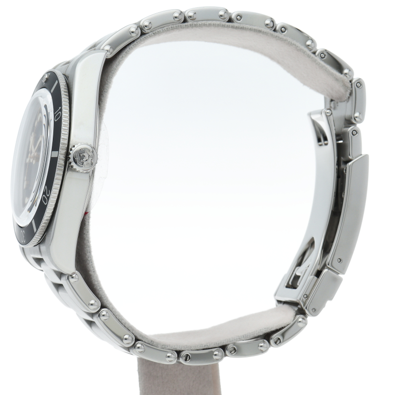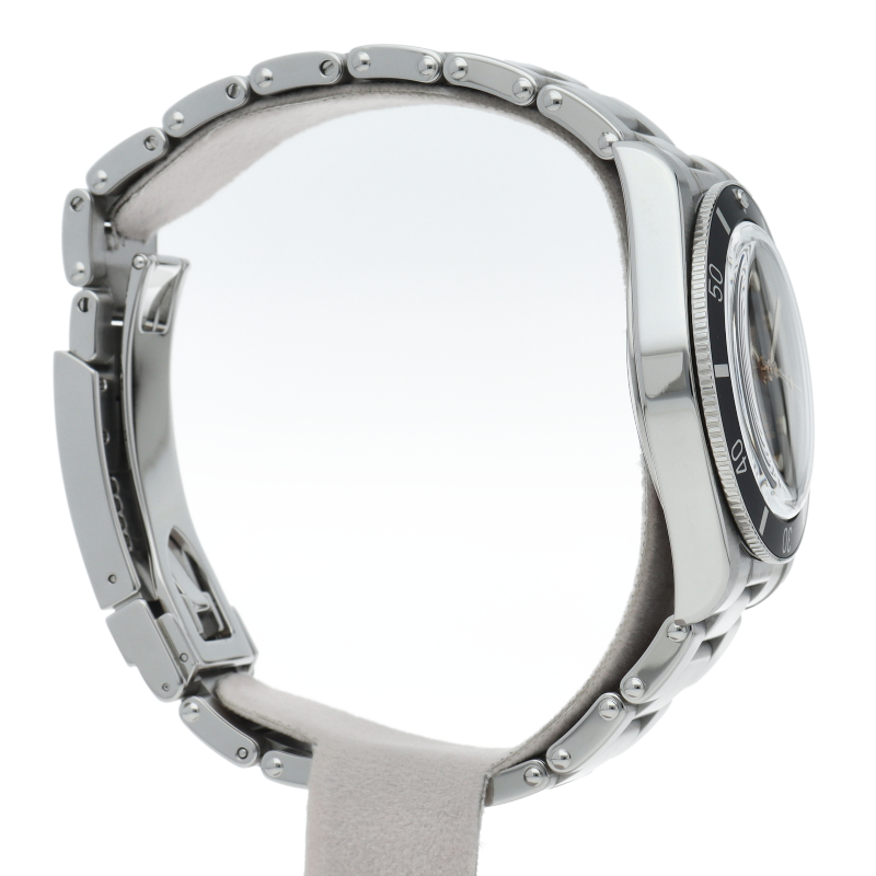 チューダーの初期のサブマリーナに使用されていた通称“イカ針”を採用した「ブラックベイ」。こちらはステンレスタイプでケース径37mmモデル。1960年代までのロレックスやチューダーに使われていたリベットブレス仕様のダイバーウォッチです。