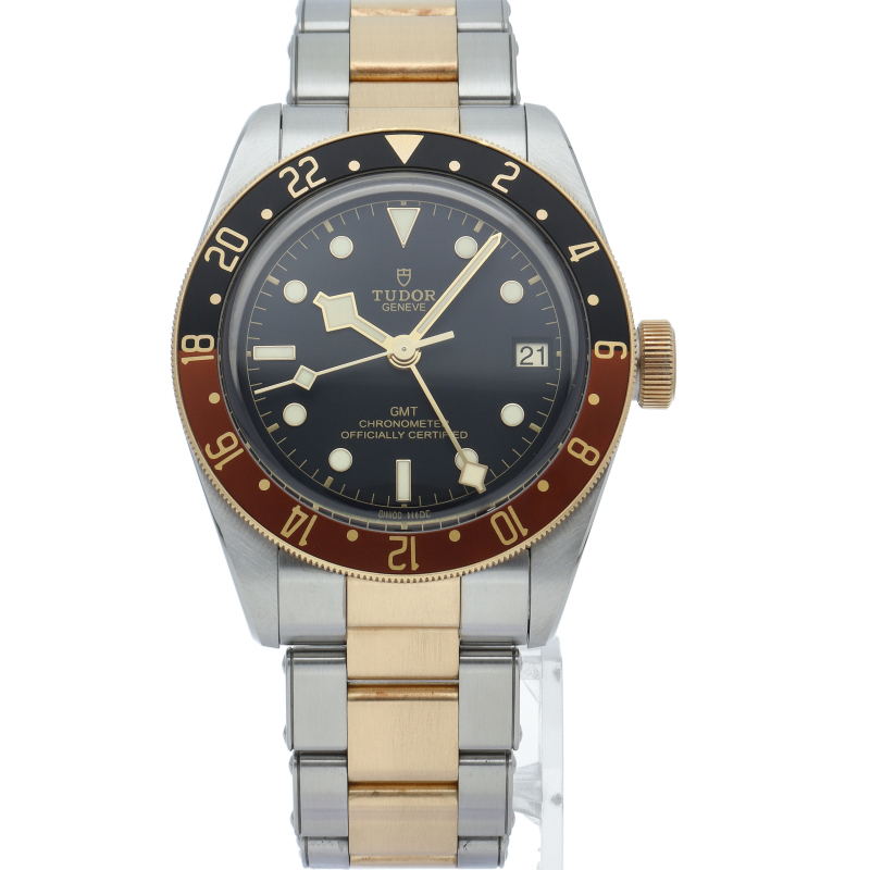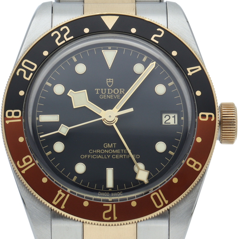 2022年の新作となる「ブラック/ブラウン」ベゼルを装備した「ヘリテージブラックベイ」。チュードルを代表するスポーツモデル「ブラックベイ」のGMT搭載モデル。搭載されている自社製ムーブメント「MT5652」は、70時間のパワーリザーブとクロノメーター認定を受けた高精度を誇り、実用性にも優れた1本となっています。