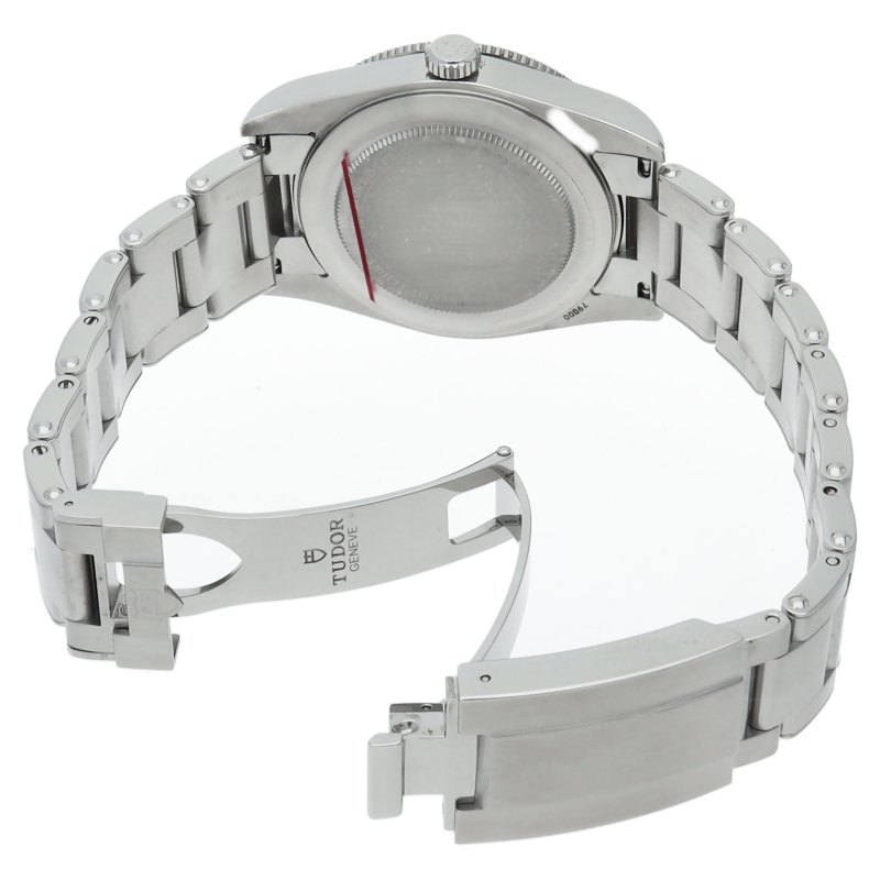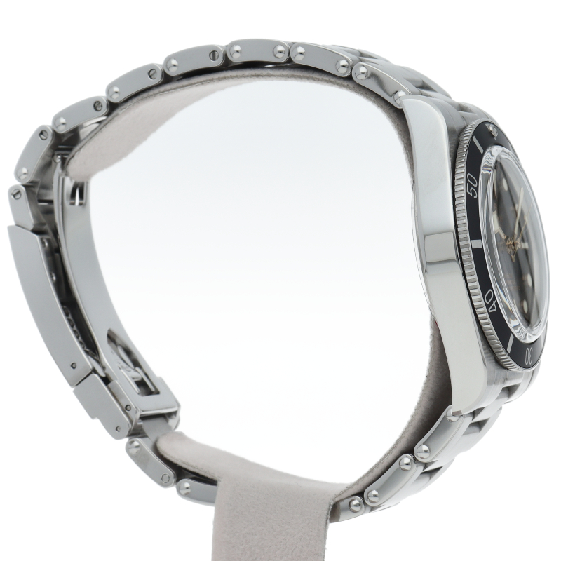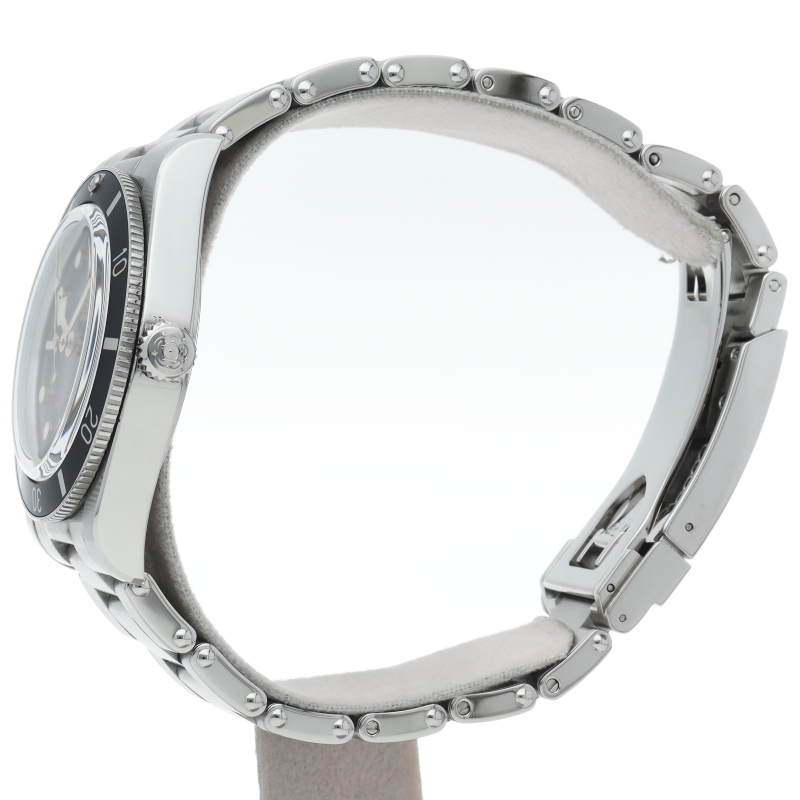 チューダーの初期のサブマリーナに使用されていた通称“イカ針”を採用した「ブラックベイ」。こちらはステンレスタイプで、ケース径37mmモデル。1960年代までのロレックスやチューダーに使われていたリベットブレス仕様のダイバーウォッチです。