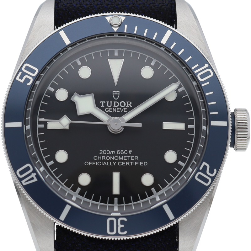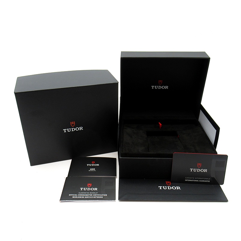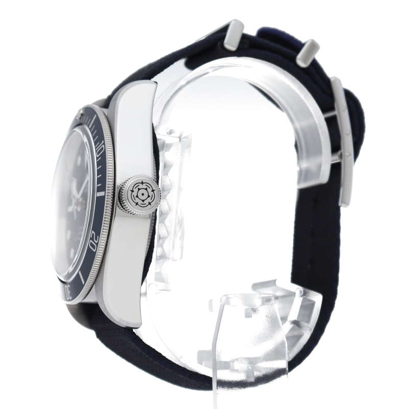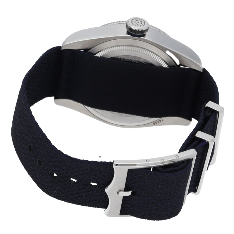チューダーの初期のサブマリーナに使用されていた通称“イカ針”を採用した「ブラックベイ」2016年発表のニューモデルです。ダイヤルには現行タイプの「盾」マークがプリントされていますが、リューズトップにはヴィンテージ感の漂う「バラ」マークを刻印。ムーブメントにはCOSC公認のクロノメーターを取得した70時間パワーリザーブの自社製キャリバー「MT5602」を搭載。