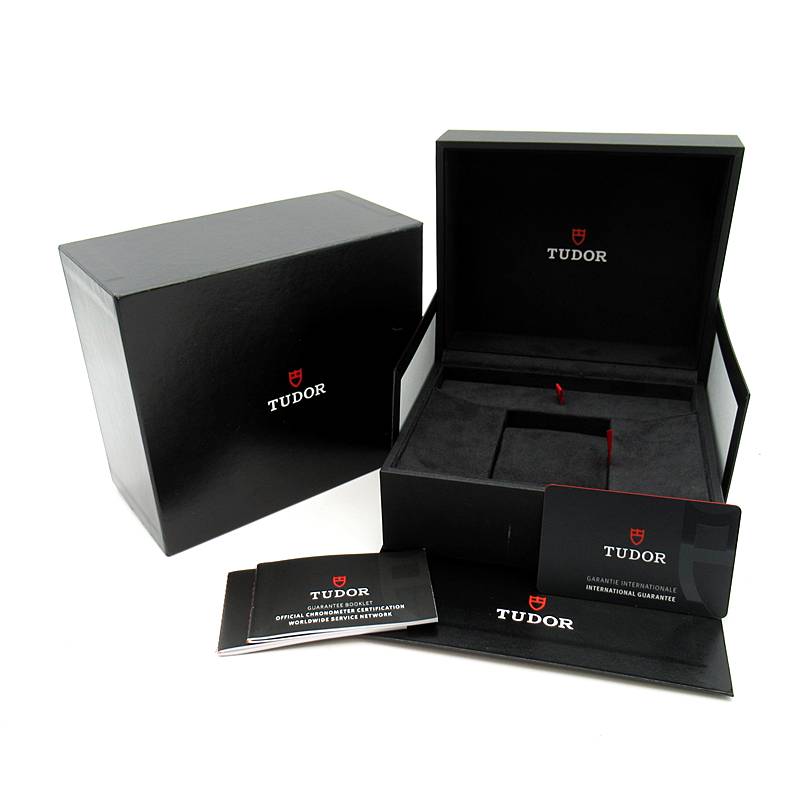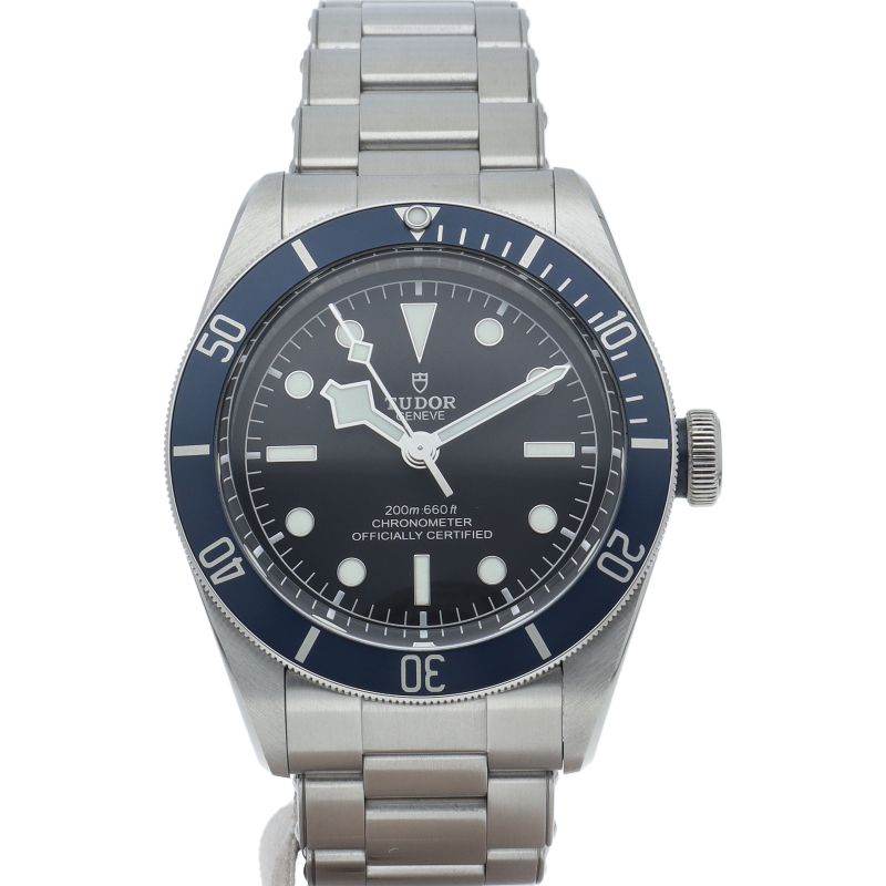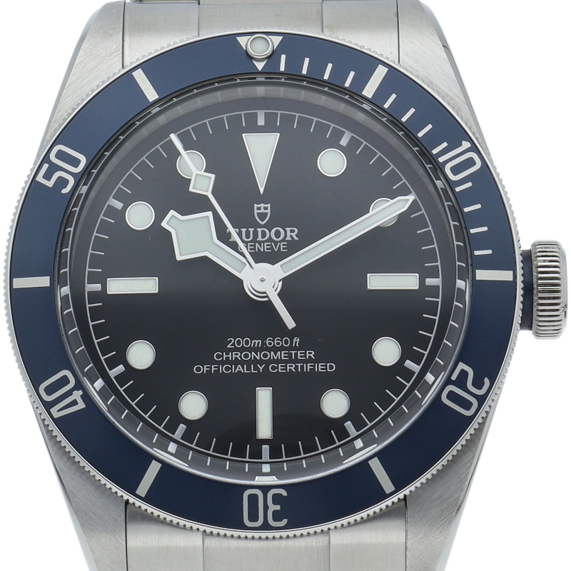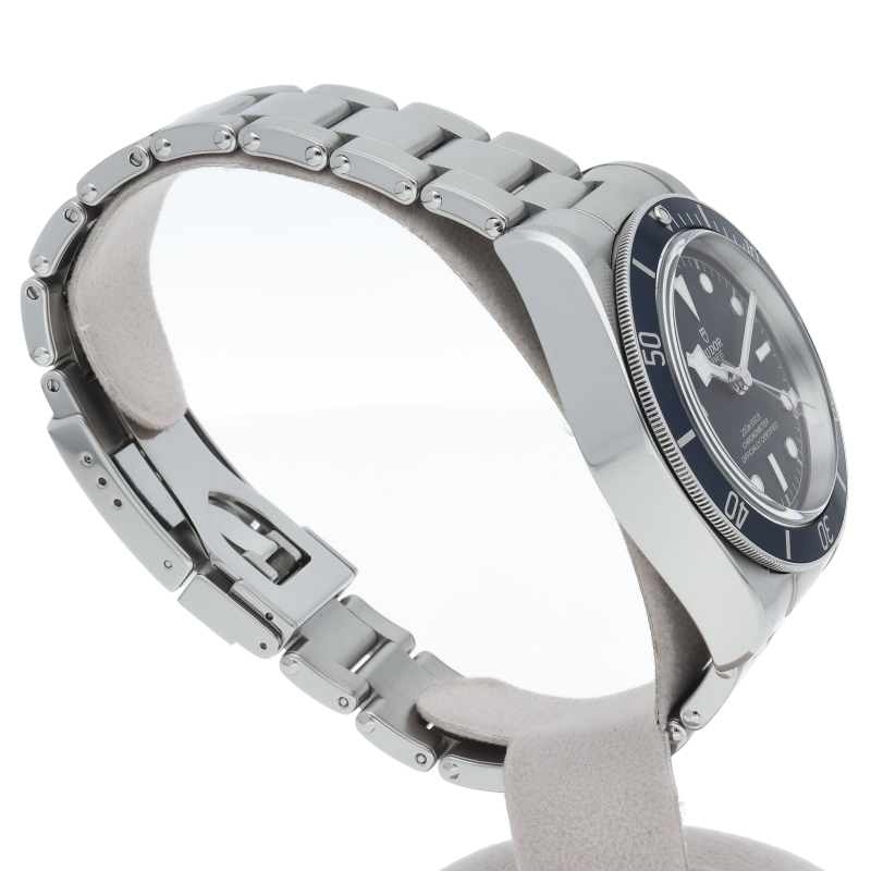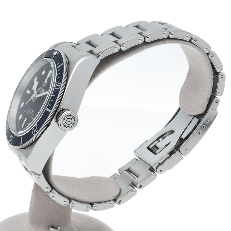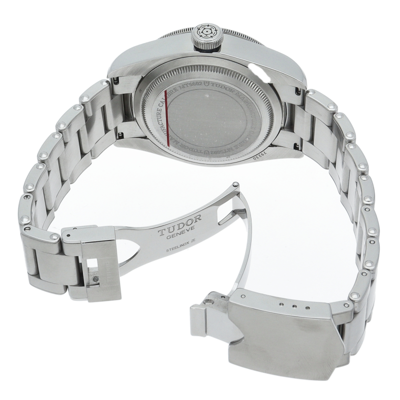 チューダーの初期のサブマリーナに使用されていた通称“イカ針”を採用した「ブラックベイ」2016年発表のニューモデルです。ダイヤルには現行タイプの「盾」マークがプリントされていますが、リューズトップにはヴィンテージ感の漂う「バラ」マークを刻印。ムーブメントにはCOSC公認のクロノメーターを取得した70時間パワーリザーブの自社製キャリバー「MT5602」を搭載。