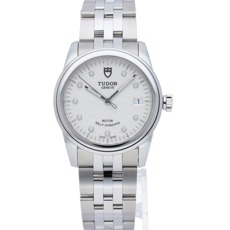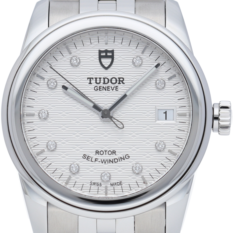 チューダーのグラマーはレトロでクラシカルなスタイルとして展開されるコレクション。3針に3時位置のデイト表示のみと華美な装飾はありませんが、ミニマルで使いやすいデザインで人気のモデルです。ジュビリーブレスレットを想起させる5列のブレスレットは、ドレッシーにもカジュアルにも使いこなせます。36mmケースは日本人の手首サイズにも馴染みやすいサイズ感です。