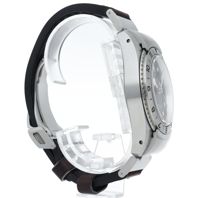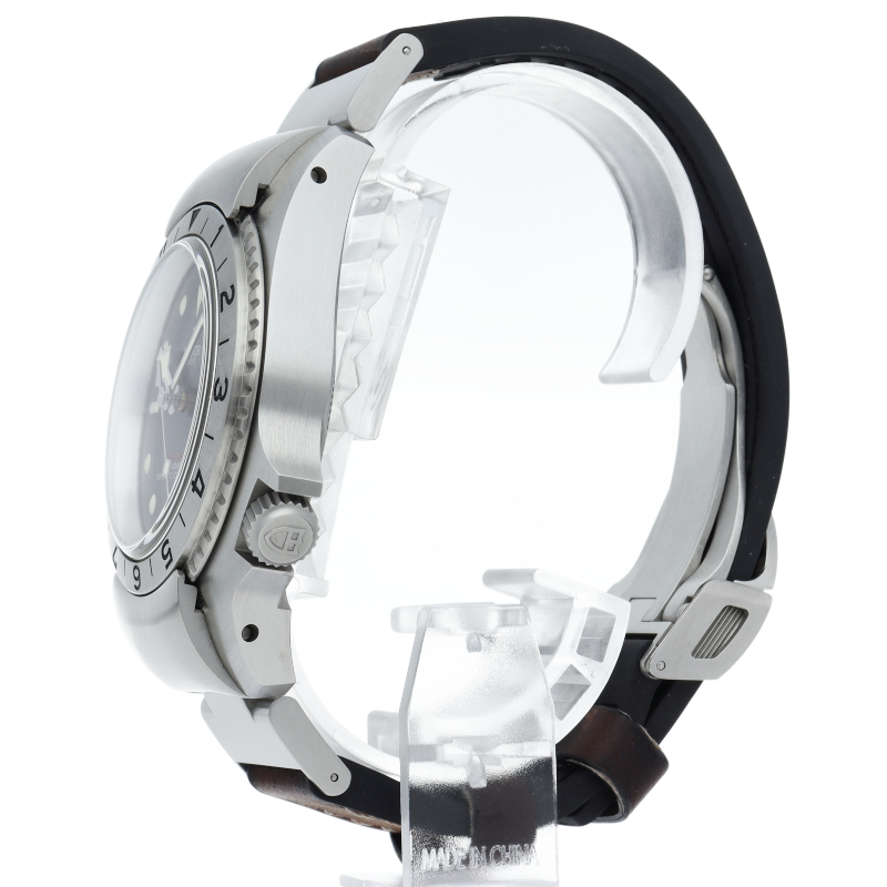 1960年代にアメリカ海軍用の時計として開発されたプロトタイプを元にデザインされた「ブラックベイP01」。自社製の自動巻きムーブメント「MT5612」はパワーリザーブは約70時間とロングパワーリザーブ性能を誇るCOSC認定されたムーブメントです。