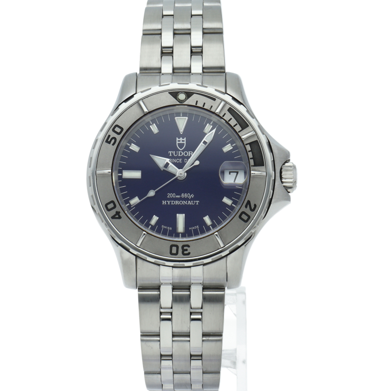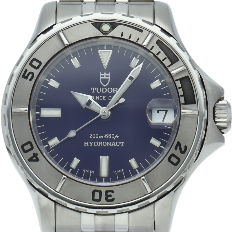 爽やかなブルーフェイスにシルバーの針とインデックスがシンプルにデザインされデイトジャストを彷彿させる「プリンスデイト ハイドロノート」。オンオフ問わず長くお使い頂けるスタイリッシュなアイテムです。