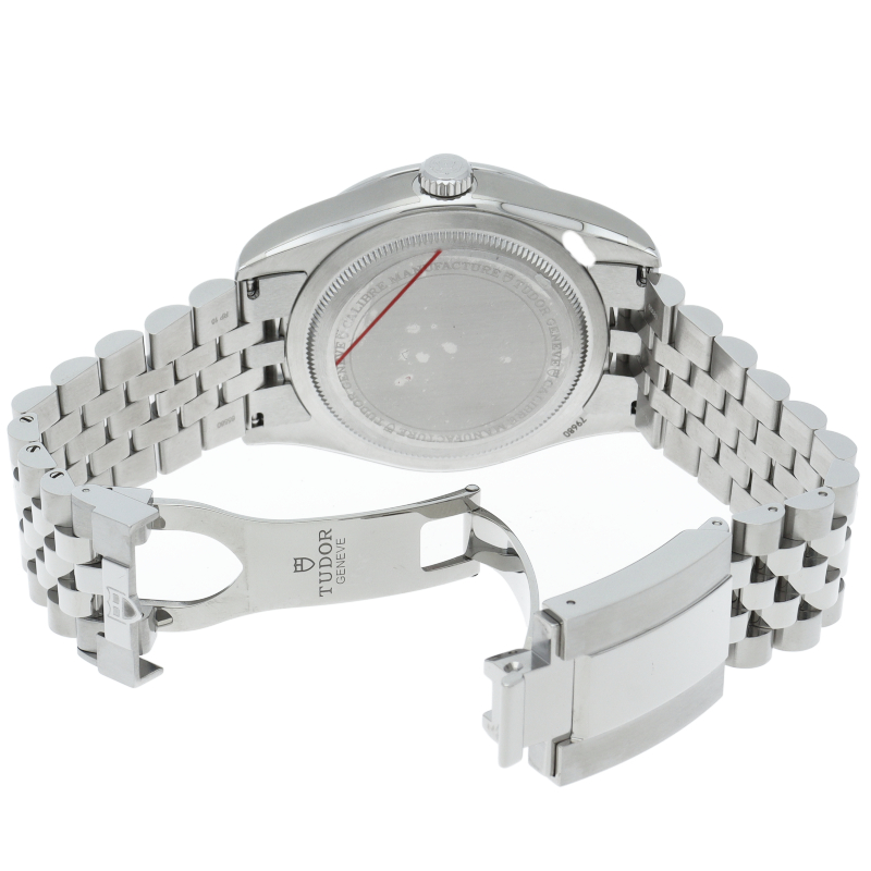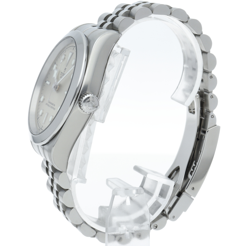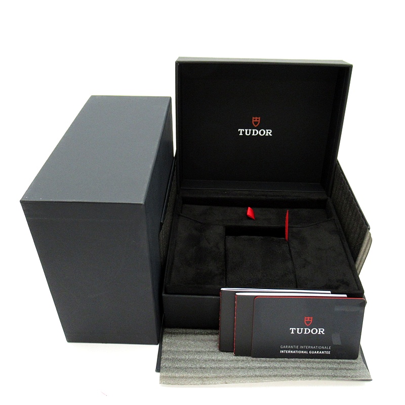 チュードルを代表するスポーツモデル「ブラックベイ」。ポリッシュ&サテン仕上げの5連ブレスを搭載した「79680」。イカ針やチューダーローズのレリーフをリューズに入れるなど、過去のモデルから受け継いだものを多く取り込んでいます。シンプルで大き目のドットインデックスは昔のチューダーを髣髴とさせます。