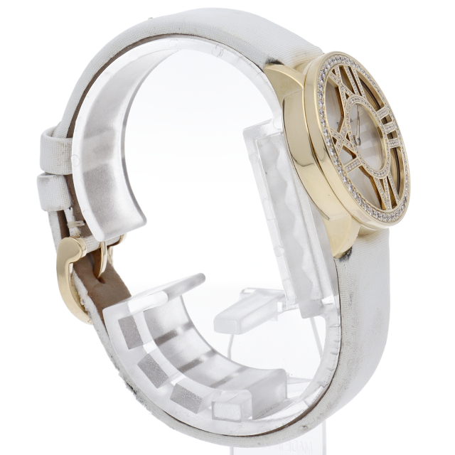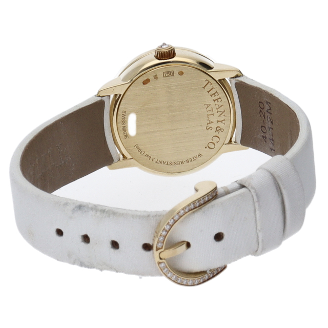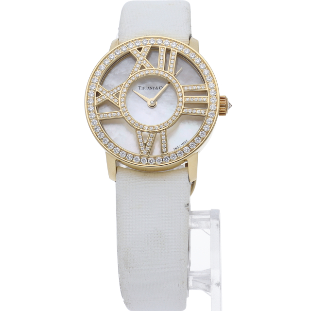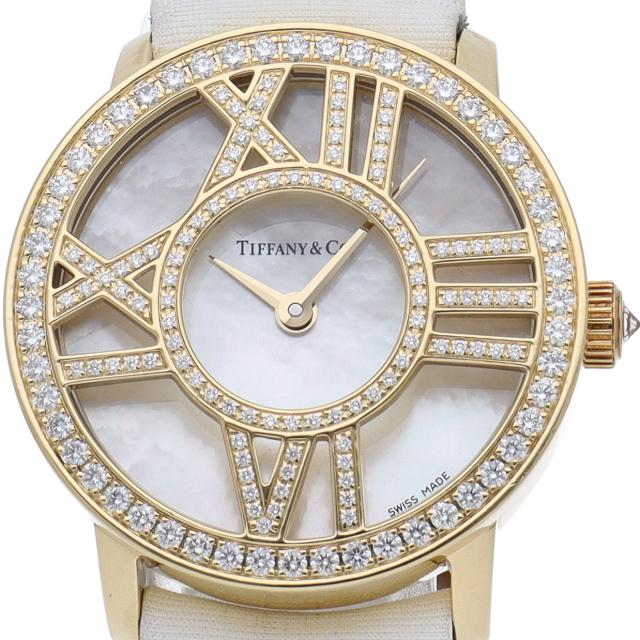 ティファニーの代表的な定番デザイン「アトラスシリーズ」。ケース素材にイエローゴールドを使用し、ケース、尾錠、リューズにダイヤモンドが施されております。