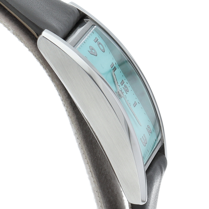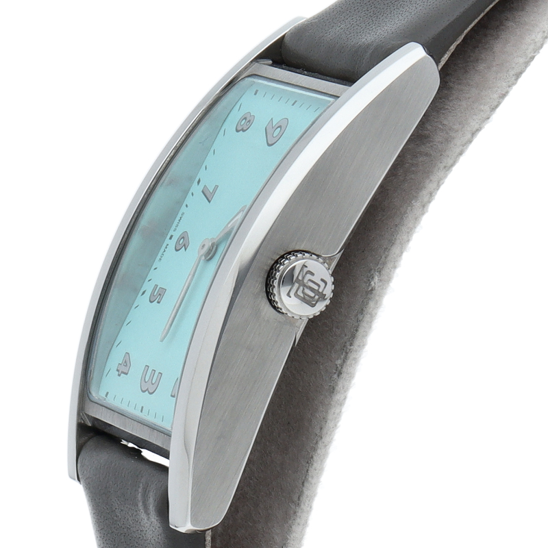 1940年代のトラベルクロックにインスパイアされた「イースト ウエスト」。時刻表示を横向きにするだけでなく、3と9の数字を大きくした遊び心が、ユニークなモデルです。