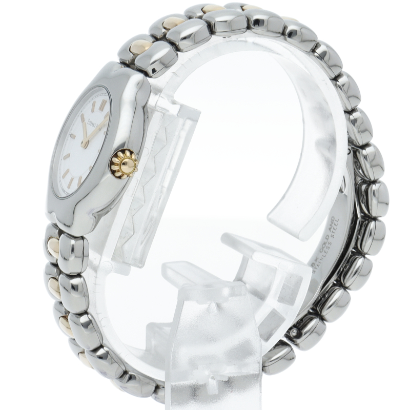 エレガントな雰囲気漂うドレスウォッチです。丸みを帯びた柔らかい曲線のブレス、ケースデザインがフェミニンで上品な印象を与えます。