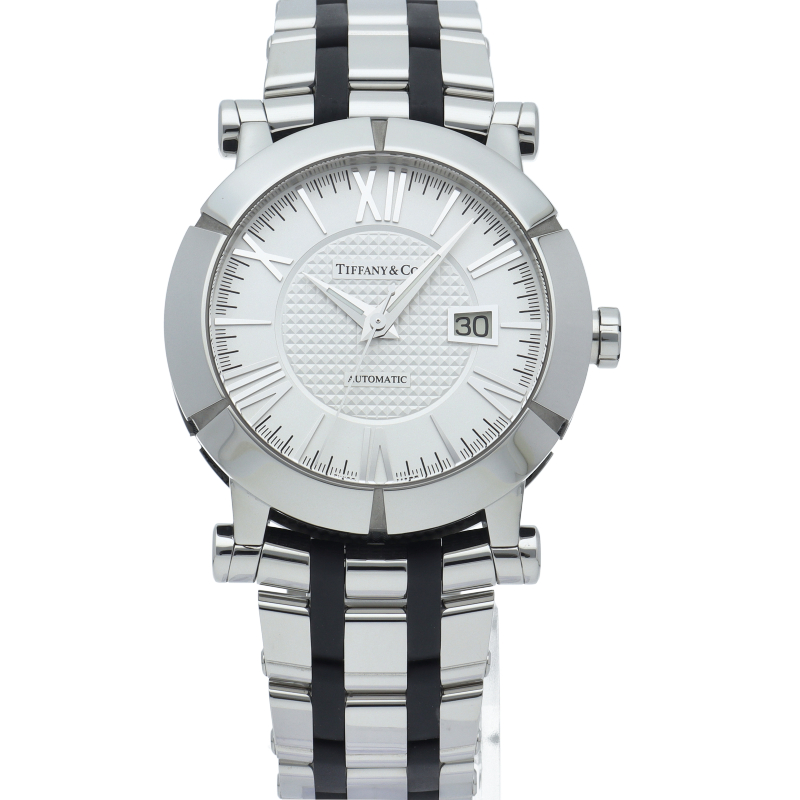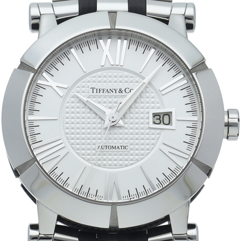ニューヨーク本店の正面玄関に飾られた時計、アトラスクロックがモデルの由来になっている「アトラスウォッチ」。立体的なローマンインデックスがアトラスの特徴です。こちらは文字盤中央に「クル・ド・パリ」の仕上げが施されたメンズモデル。