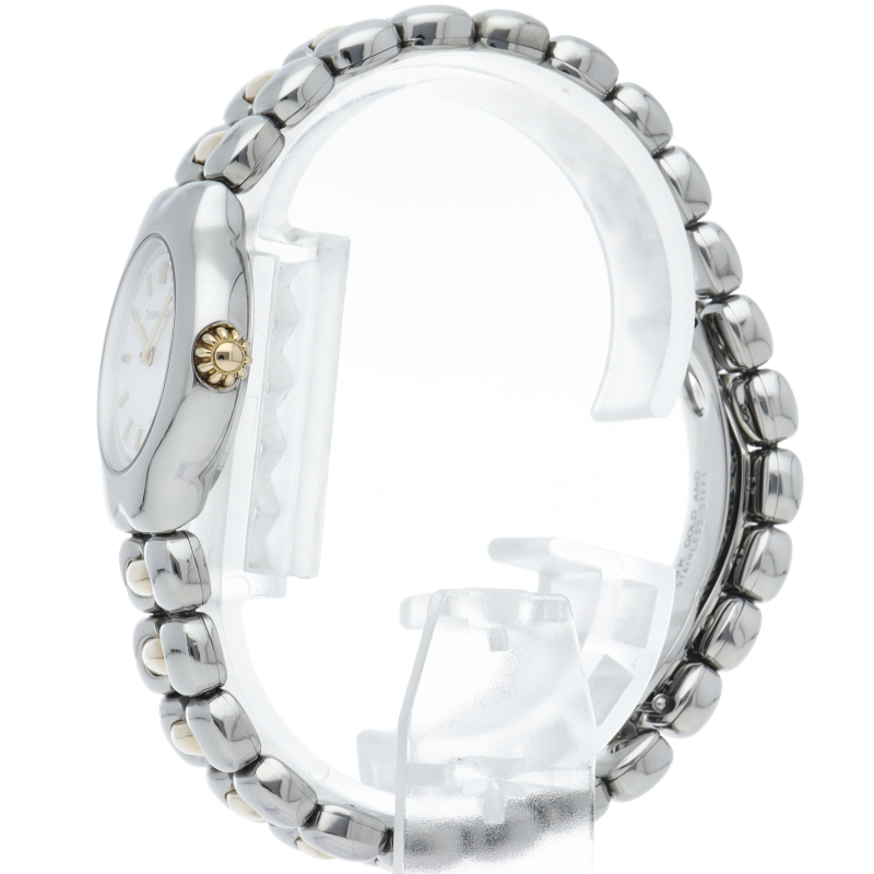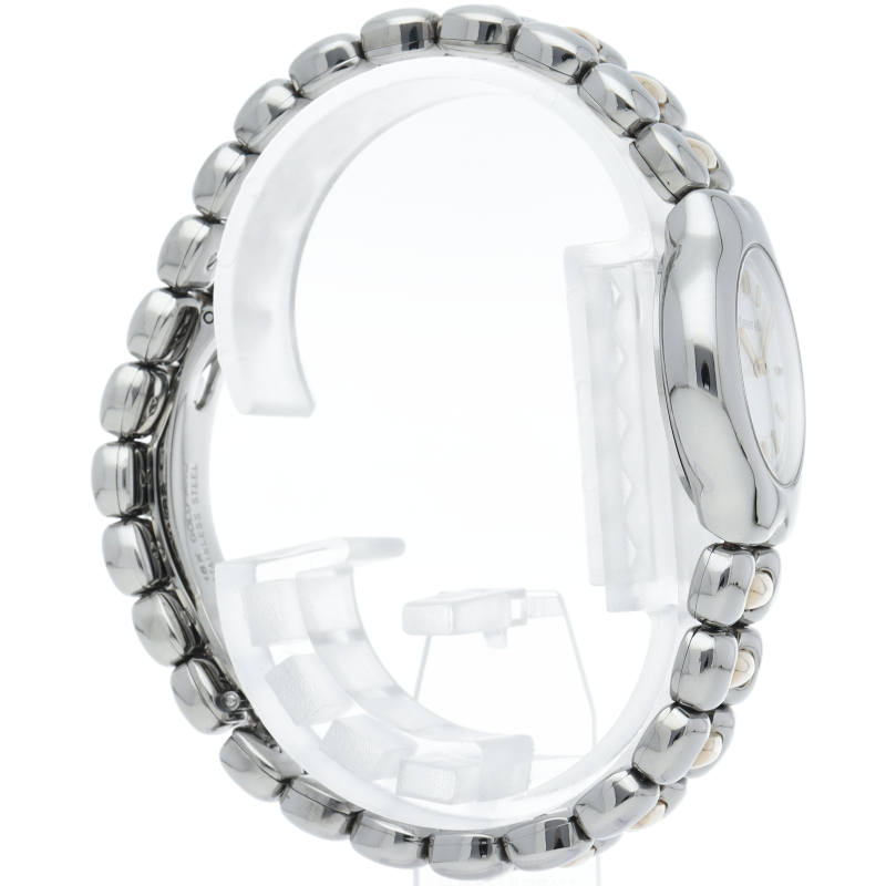 エレガントな雰囲気漂うドレスウォッチです。丸みを帯びた柔らかい曲線のブレス、ケースデザインがフェミニンで上品な印象を与えます。