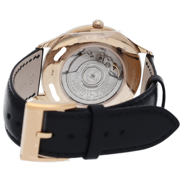 古きよき時代とジャズへのオマージュとして生まれたジャズマスターシリーズ。ピンクゴールドの指針&アラビア数字が洗練された印象を与えてくれます。シンプルさと機能美を追及したモデルです。H38545751(H385450)