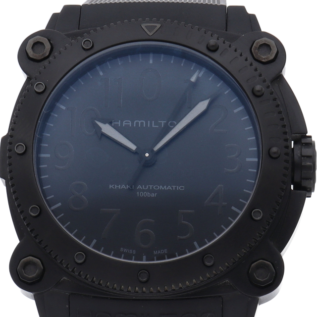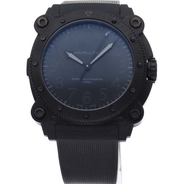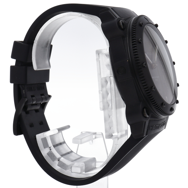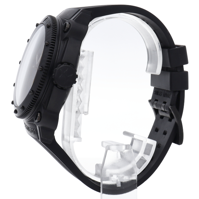 新しいチタンケースを纏った高性能な「カーキ ネイビー ビロウ ゼロ」は、軽量で優れた耐久性を実現。潜水艦にインスパイアされたこのモデルは、1000m防水機能とヘリウムエスケープバルブを搭載。ブラックPVDが施された大胆な46mmのチタンケースは、ステルススタイルそのものです。ケースバックにあしらわれたエンボス加工のダイビングマスクが 深海への冒険心を掻き立てます。H785050(H78505330)